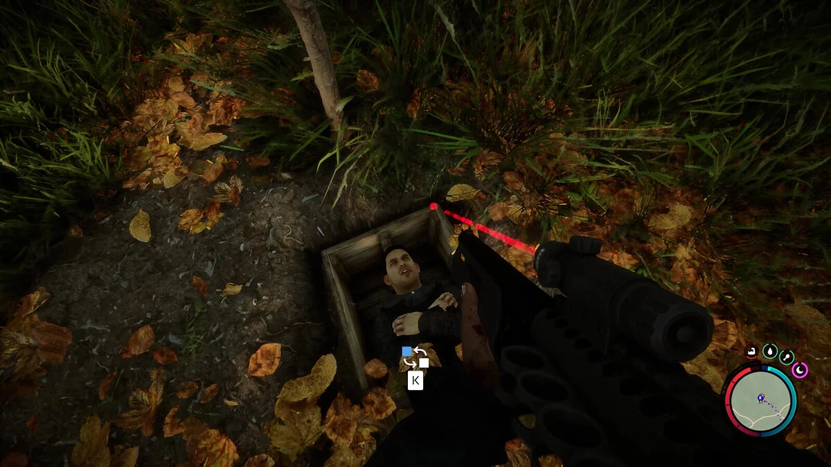 Для того чтобы раскопать могилу, вам нужно будет подойти к фиолетовому маркеру на карте (местоположение обозначено на скриншоте выше). При приближении к нему ваш GPS начнёт издавать звуковой сигнал. Когда вы будете в нужном месте, маркер лопаты укажет, какую именно область нужно перекопать. Затем экипируйте лопату и нажимайте ЛКМ.