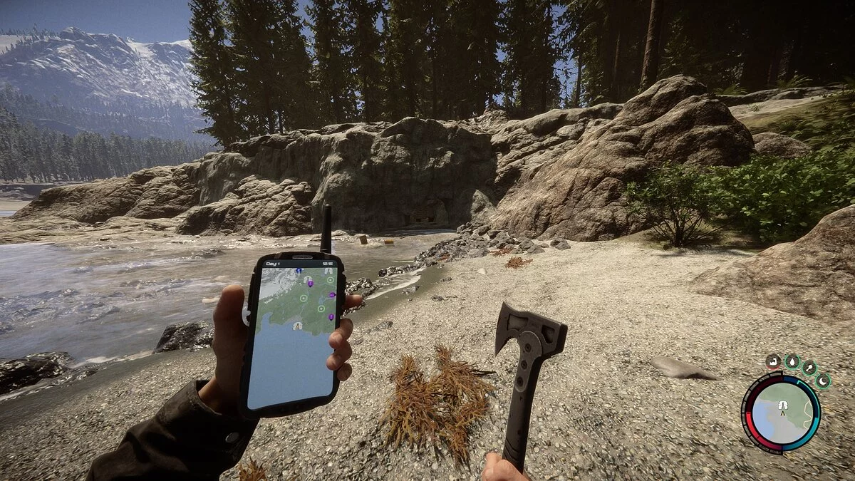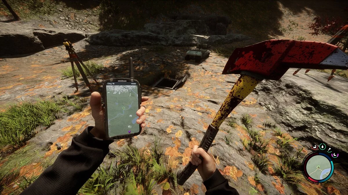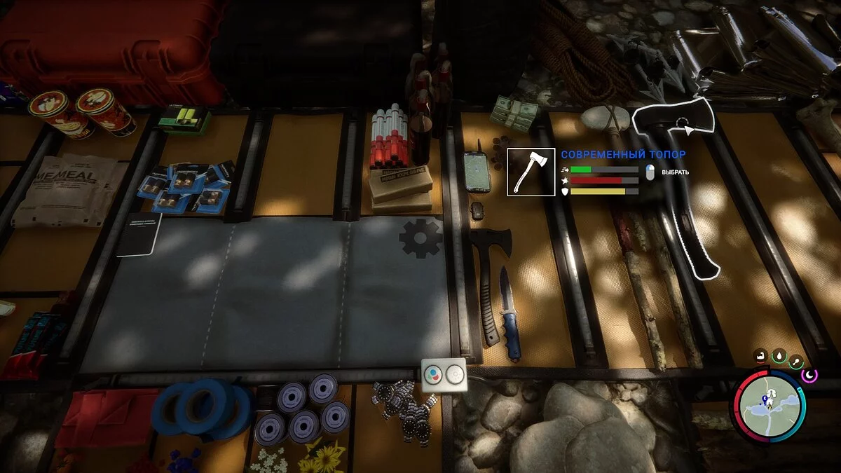 Отличный инструмент для быстрой заготовки дров, а также прекрасное оружие. Найти его можно, войдя в подземный бункер, отмеченный на карте (здесь же вы впервые могли найти 3D-принтер). Стоит отметить, что для этого понадобится отыскать вторую ключ-карту, которая станет доступна только после получения лопаты и открытия закопанного бункера.