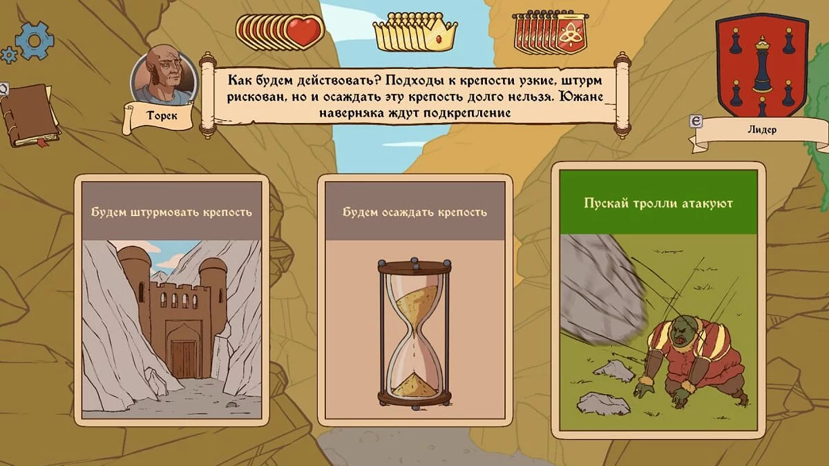 Имеет незначительное количество выборов. По итогам второй главы либо придется отвоевывать свою столицу, либо брать столицу южан.
