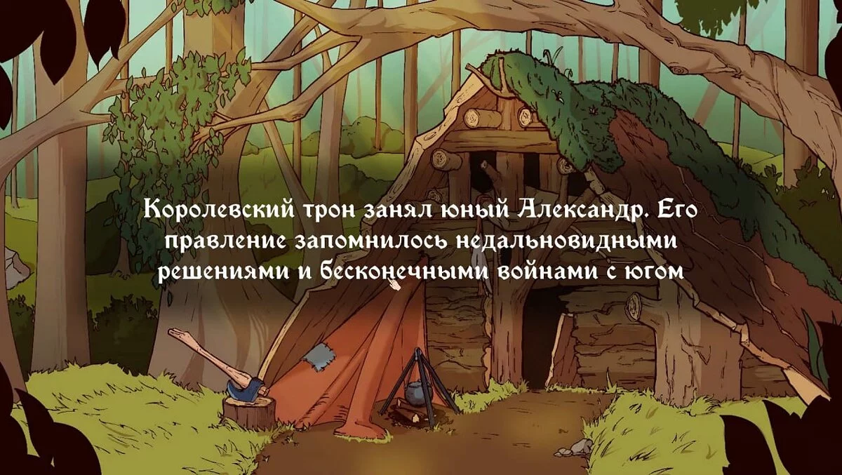 Из леса будет приближаться леший, выберите действие «Сражаться с ним», уточните, почему он злой, пообещайте не вырубать лес и прикажите беспризорнику отправиться рассказать об этом лешему.