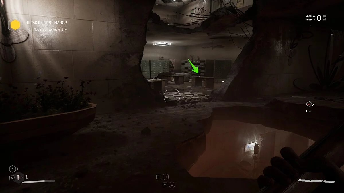«Еще бы немного и спаслась». После спуска на лифте, вам необходимо найти вентиль, чтобы пробраться в комплекс. Поднимайтесь по лестнице и рядом с вентилем будет лежать щебетарь.