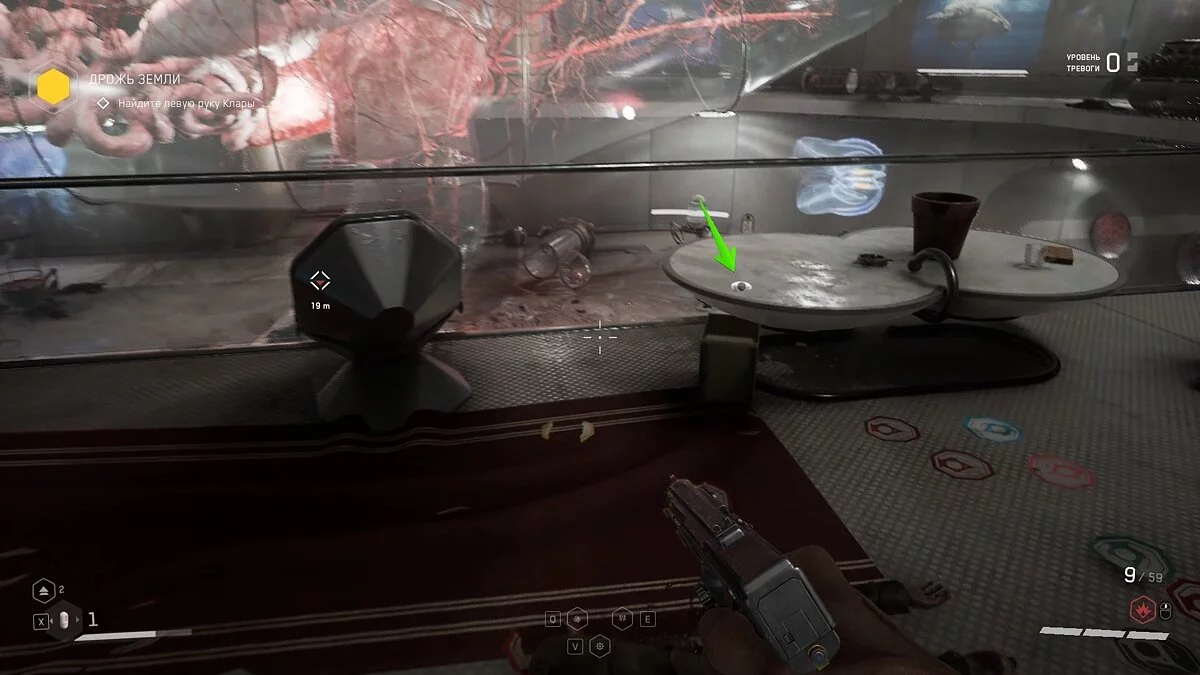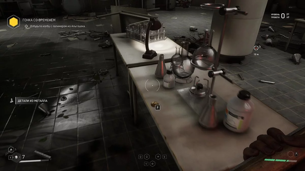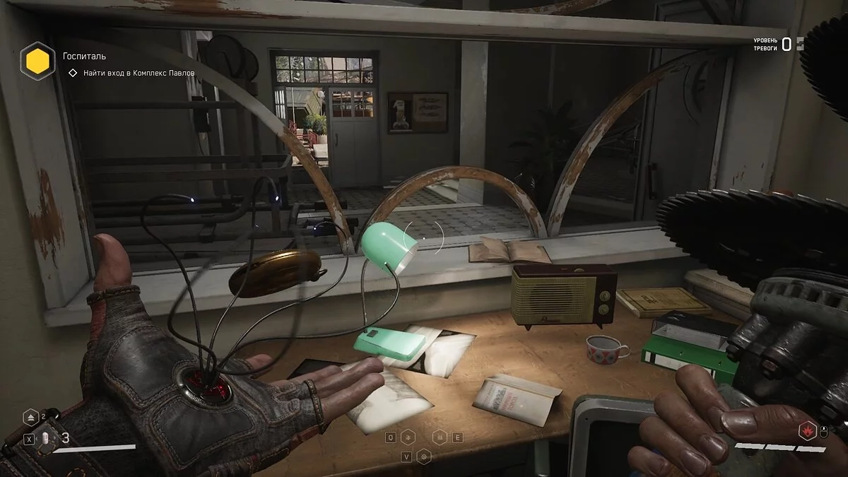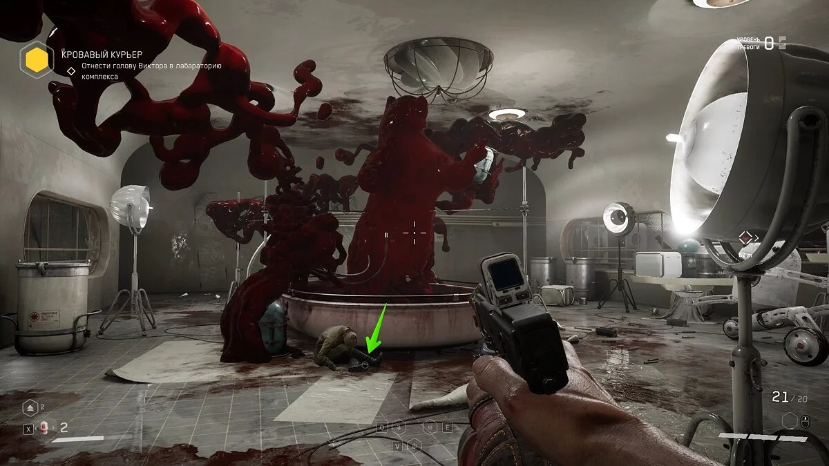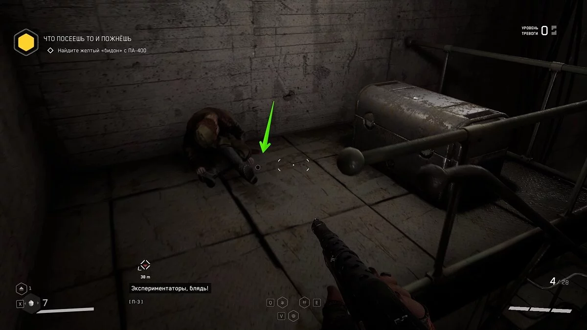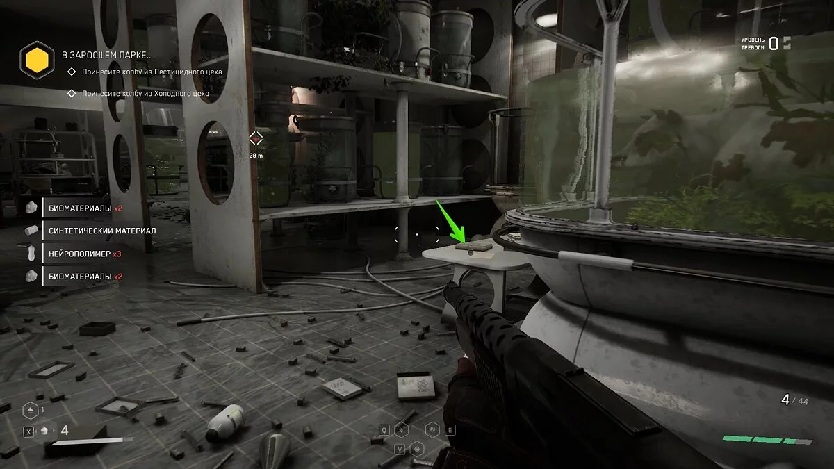 «Вот и доигрались». Следуя по коридору за очередной колбой, вы покажут мутантов за стеклянной стеной. Заходите внутрь, убейте монстров и заберите щебетарь со стола с химическими принадлежностями.