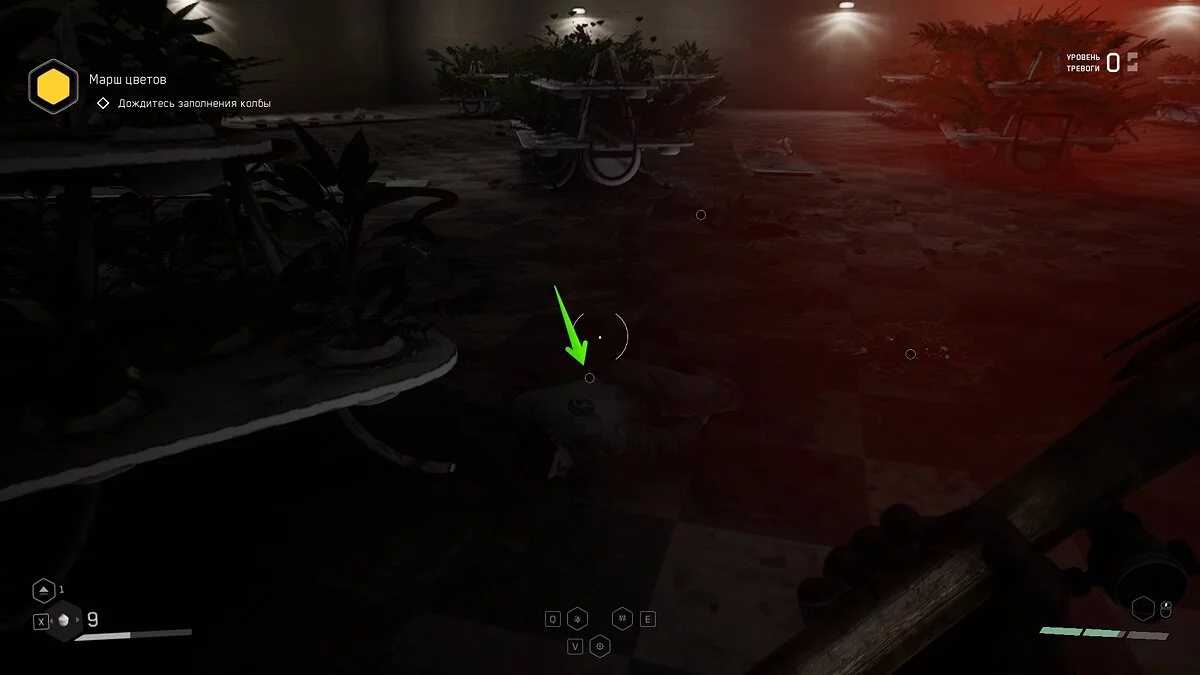 «Клуб аграрных игр». Следующий предмет находится в пестицидом цехе с растениями и большими вентиляторами. Напротив лестницы от входа в командный пункт лежит труп. Щебетарь на полу, рядом с ним.