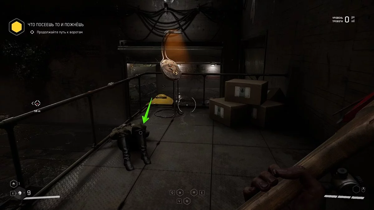 «Временные трудности 2». После охлаждения всех бойлеров, поднимаемся на 4-ый этаж. От лестницы сворачиваем направо, а затем налево. Щебетарь лежит на коробке.