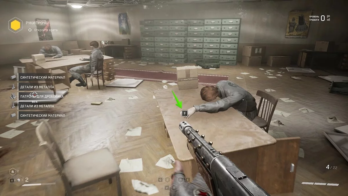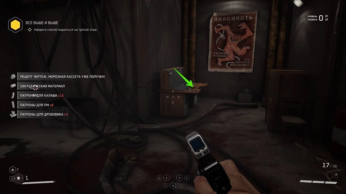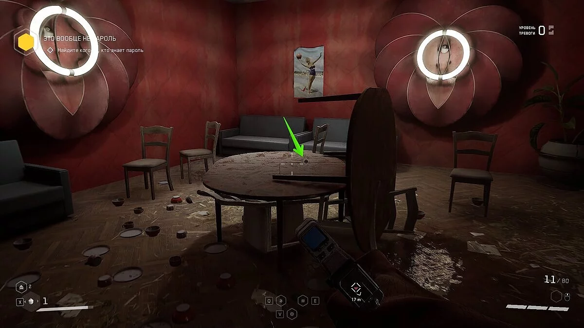 «Озабоченность здоровьем». Когда попадете в комплекс ВДНХ, вы увидите дверь, запертую на кодовый замок. Код от нее будет нарисован на черной стене в комнате напротив. Открывайте комнату и забирайте щебетарь со стола с миниатюрами.