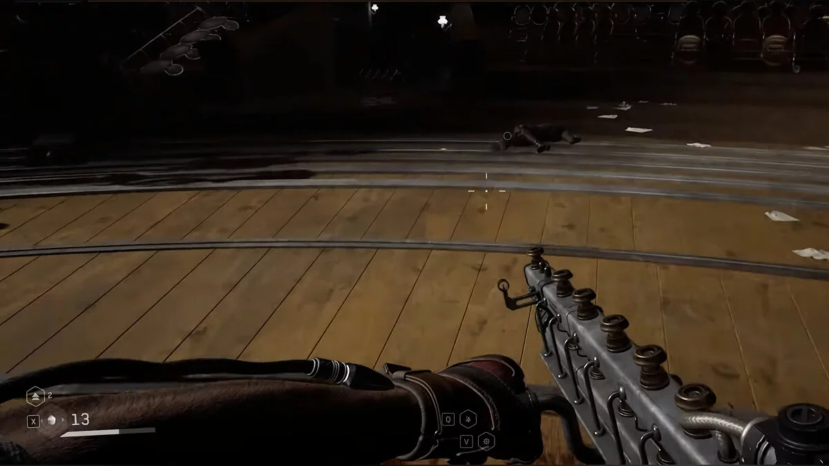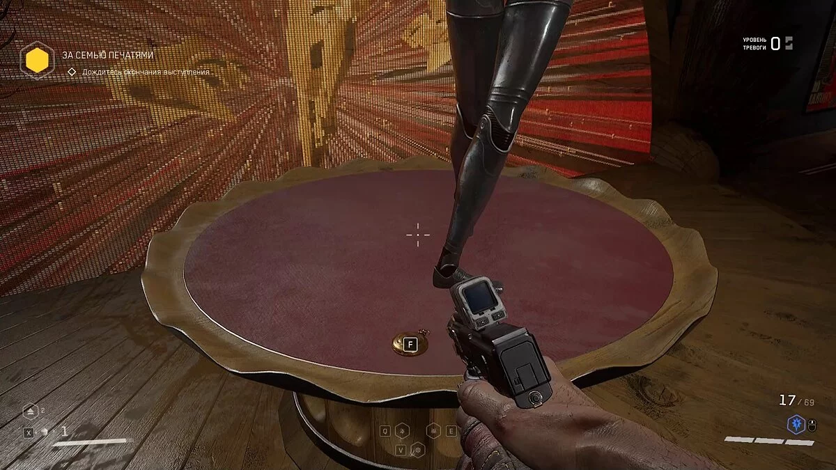 «Становление психопата…». На арене, где выступает балерина и волнами набегают монстры, на подиуме лежит щебетарь. Отбейтесь от противников и заберите предмет из под ног робо-балерины.