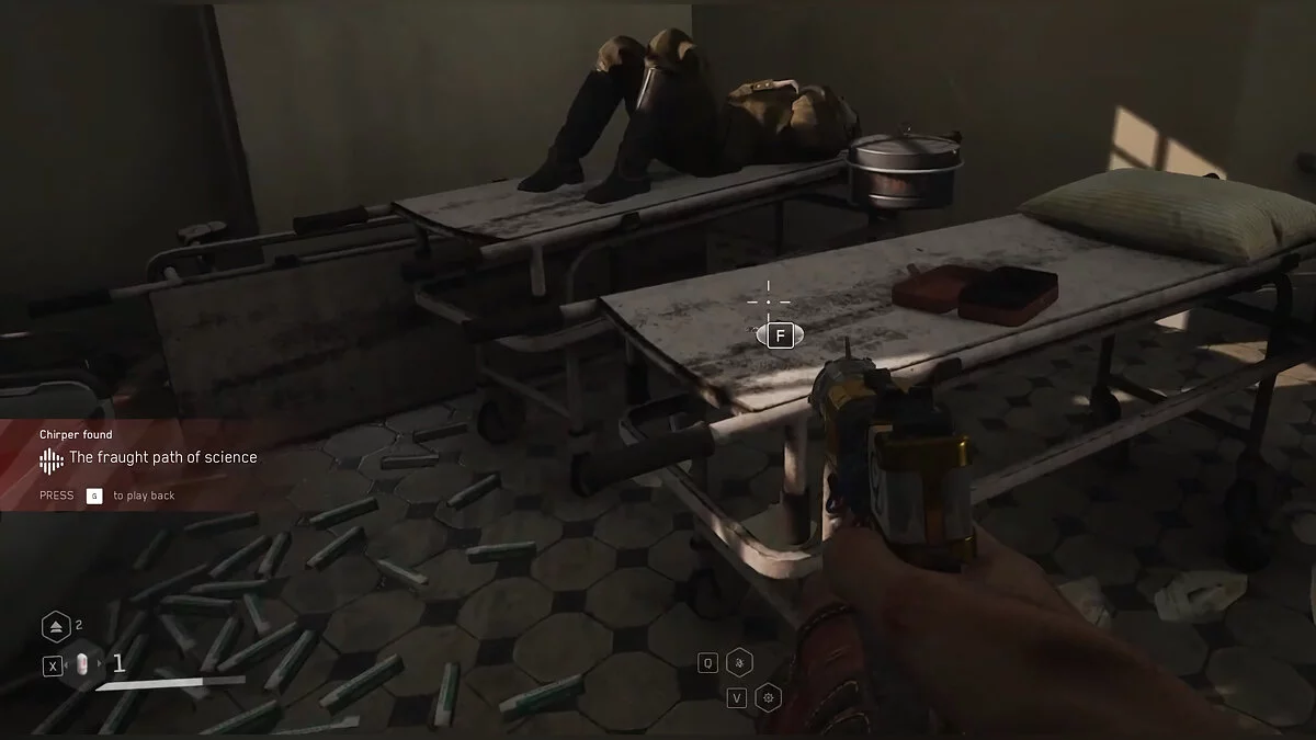 «Знал ли он, что такое безумие?». Справа от предыдущего Щебетаря есть вентиляция. Ползите в соседнее помещение. Щебетарь лежать на тумбочке рядом с вентиляционным отверстием из которого вы выбрались.