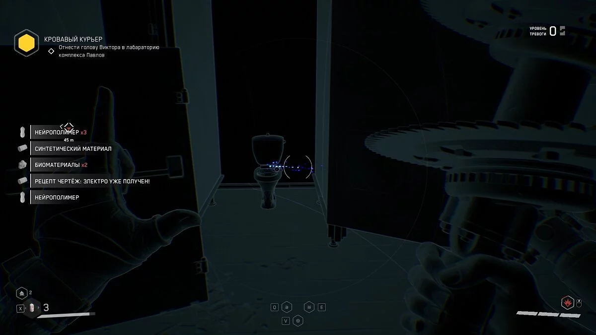 «Медицина — Non penis canis est». В помещении с животными в аквариумах, прыгаем в вентиляцию. Выбираемся из нее с другой стороны и идем в конец комнаты. Щебетарь лежит на столе рядом с коровой в колбе.