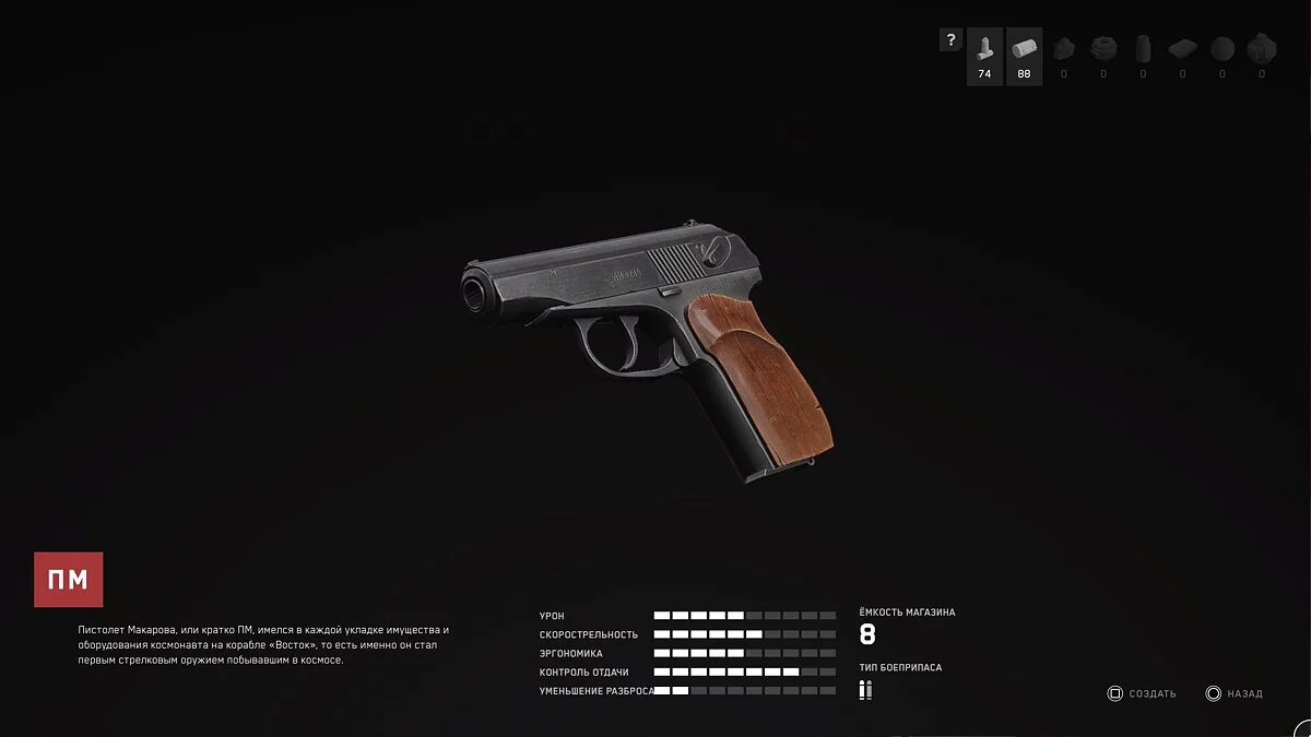 ПМ. Этот пистолет можно использовать как запасной вариант, когда у вас кончились патроны или заряд на основном оружии. Тратить ресурсы на прокачку не стоит.
