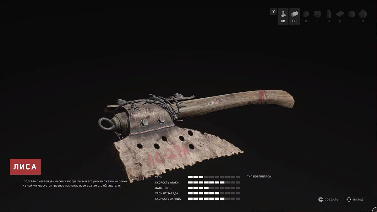 Лиса. Собрать этот топор и прокачать его можно, но лучше вложить материалы во что-нибудь другое.