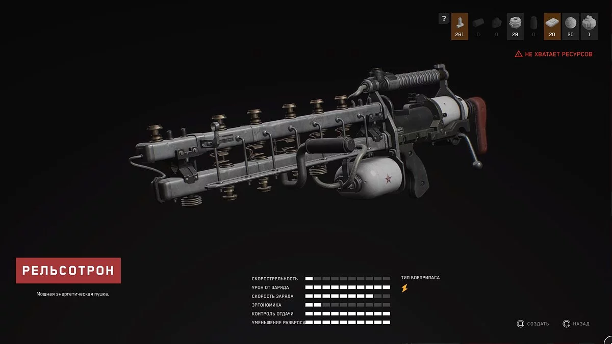 Рельсотрон. Самое мощное оружие в игре. Правда, каждый выстрел тратит много энергии, поэтому рекомендуется использовать только против тяжело бронированных противников. Подробнее о рельсотроне мы рассказали в отдельном гайде.