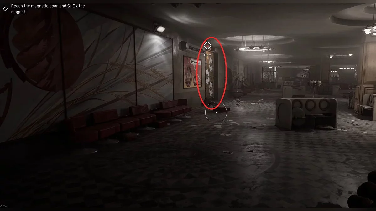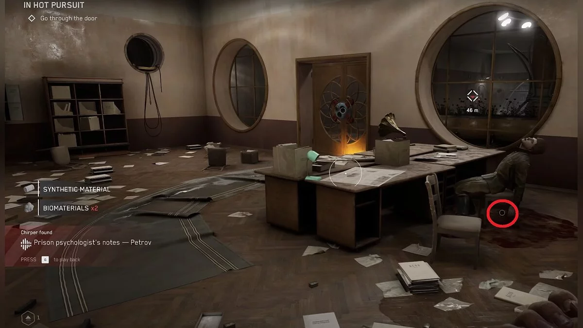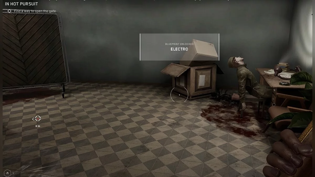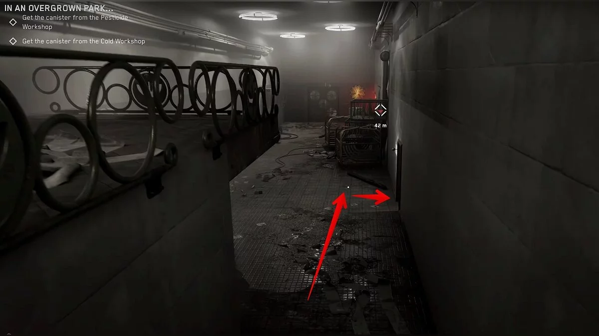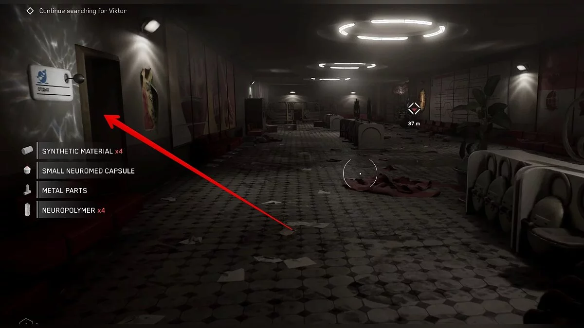 Одолейте робота ВОВ-А6/4 «Лаборант», который представлен как мини-босс. После этого взломайте замок на двери, пройдите по коридору и зайдите в безопасную комнату. Там вы впервые увидите Элеонору, устройство для изготовления оружия и прокачки способностей главного героя. Чертёж позволит крафтить маленькие капсулы с непремом. Они используются для восстановления здоровья.