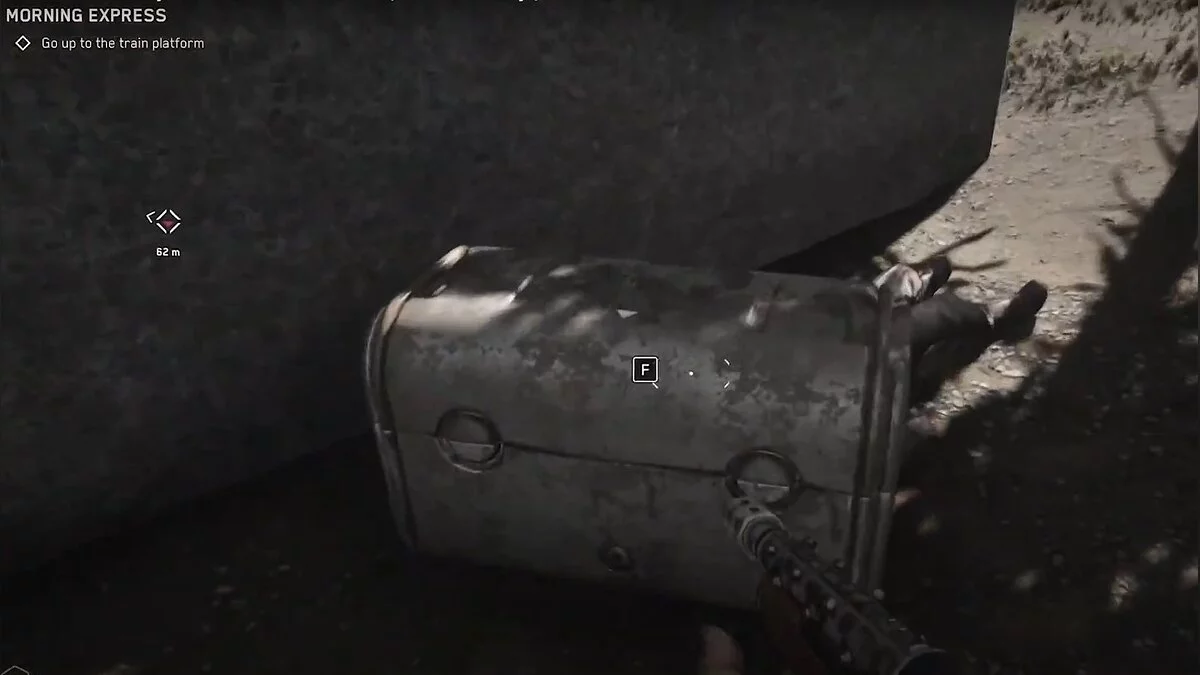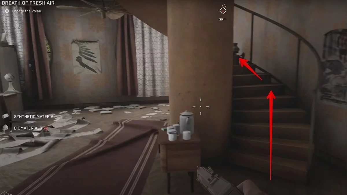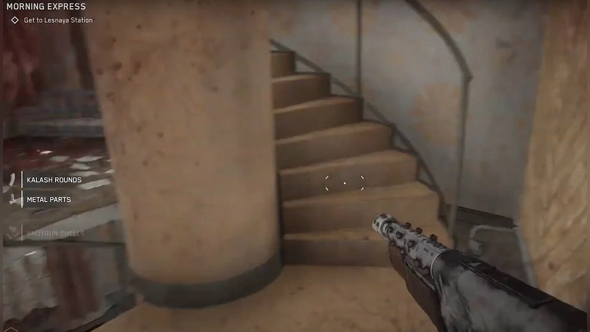 После встречи с роботом «Бурав» и небольшого паркурного эпизода вы окажетесь в вентиляционной шахте. Пройдите её до конца, спрыгивайте вниз и бегите вдоль канатной дороги в левую сторону. Справа будет закуток, где находится комната отдыха. Там есть инструкция по сборке электромагнитного ствола для дробовика.