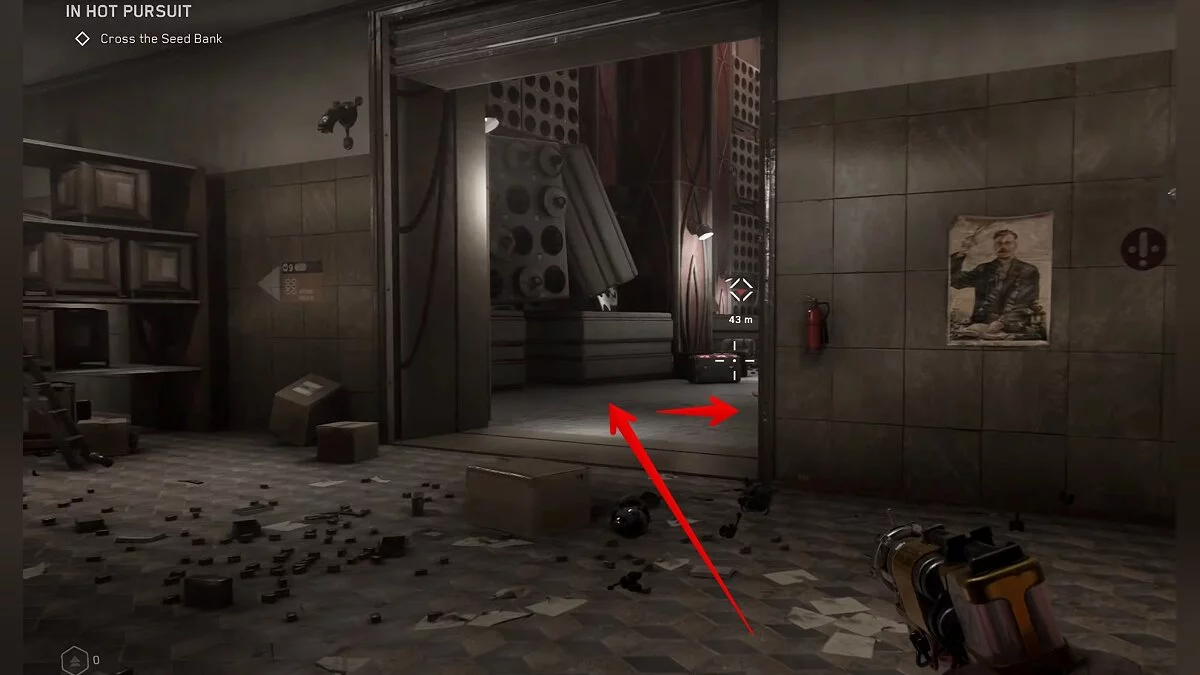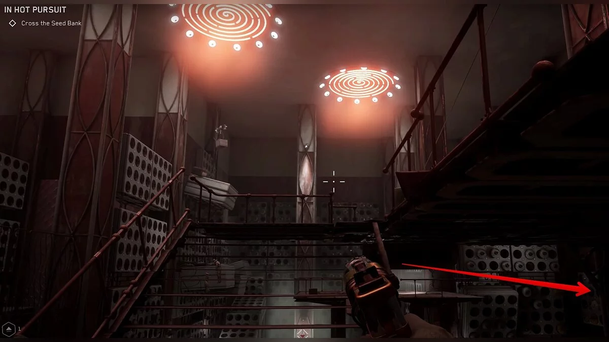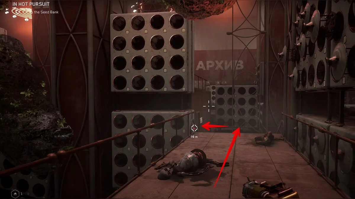 Для продвижения по сюжету в Архиве Семян вы откроете замок рядом с крутящимся роботом. Наверху находится большой ящик. Забраться туда можно по контейнерам. В нём лежит чертёж средней капсулы с непремом.