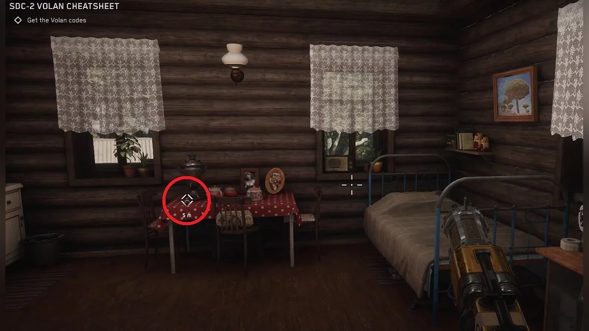 Когда вы окажетесь в деревне, найдите деревянный дом с цифрой «3» и надписью «Продукты». Взломайте дверь и убейте робота. В ящике вы найдёте чертёж патронов для Калаша.