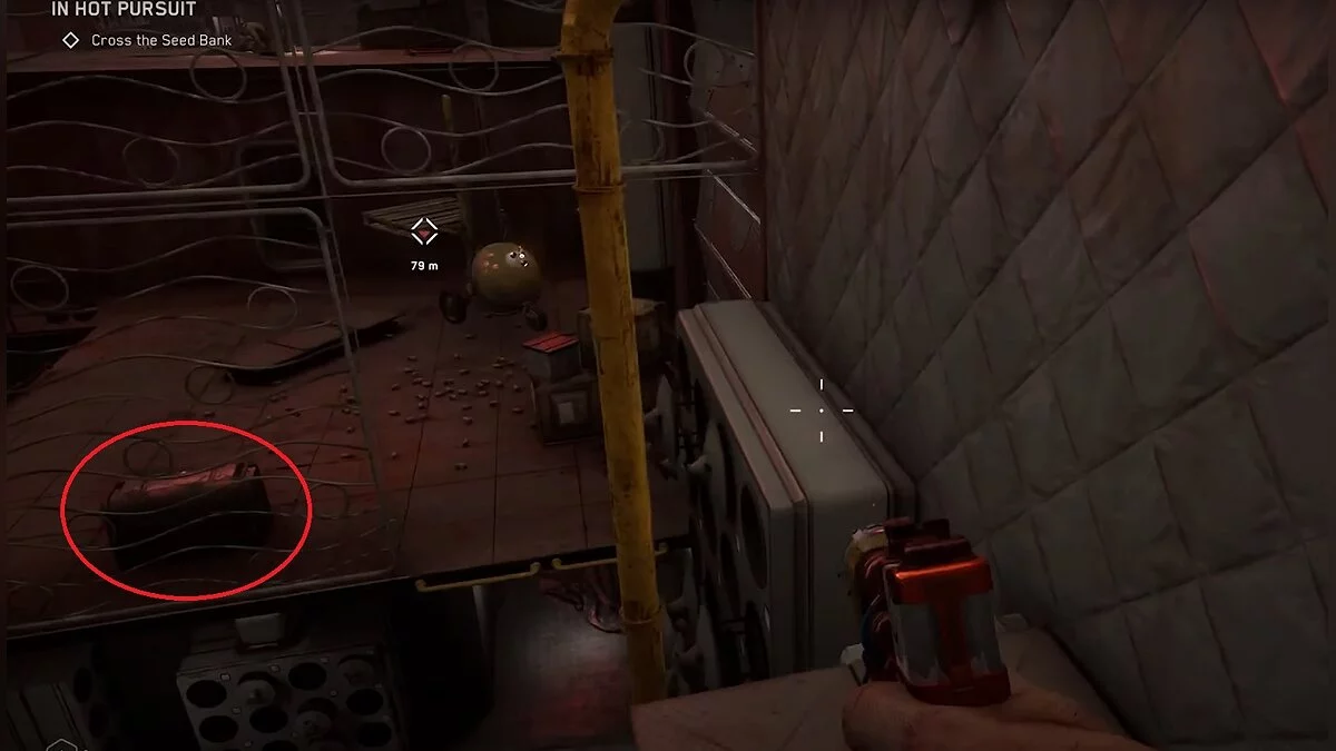 Продвигайтесь дальше по Архиву Семян. Очередной красный ящик стоит рядом с кругоым роботом-погрузчиком. В нём находится инструкция для сборки зажигательных патронов.