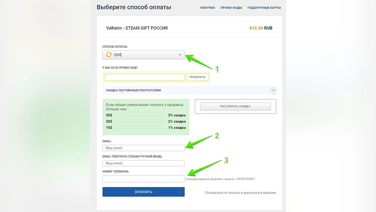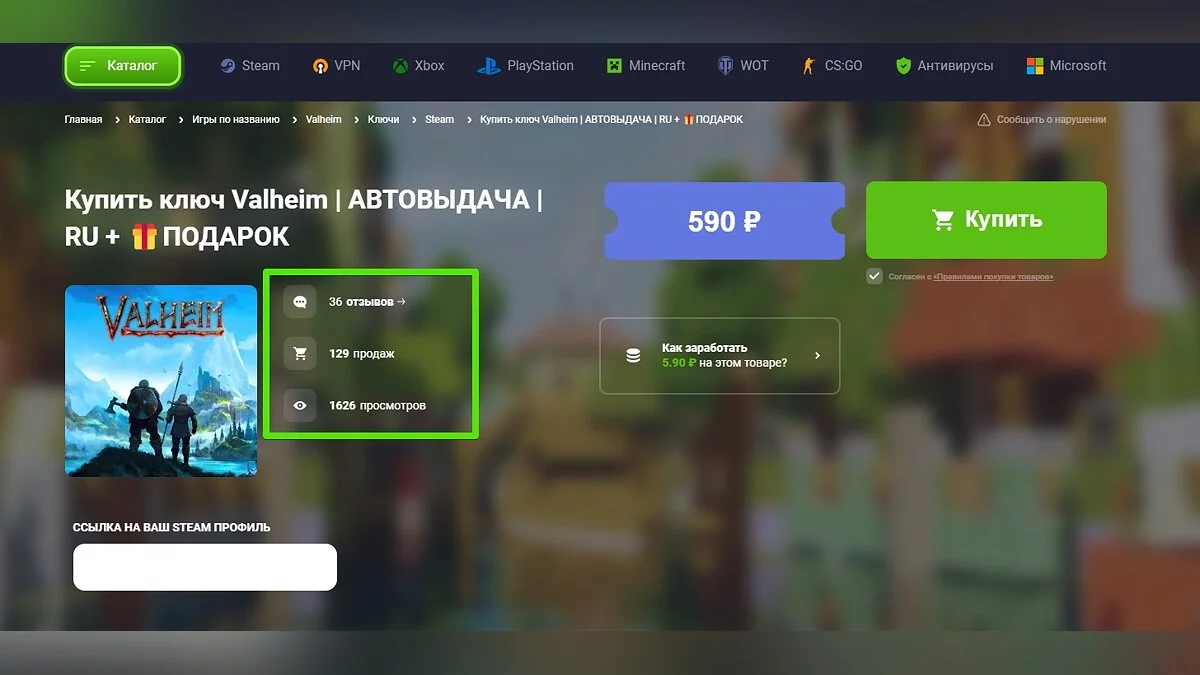 После оплаты вы будете перенаправлены на сайт продавца, где также может понадобиться ссылка на Steam-профиль.
