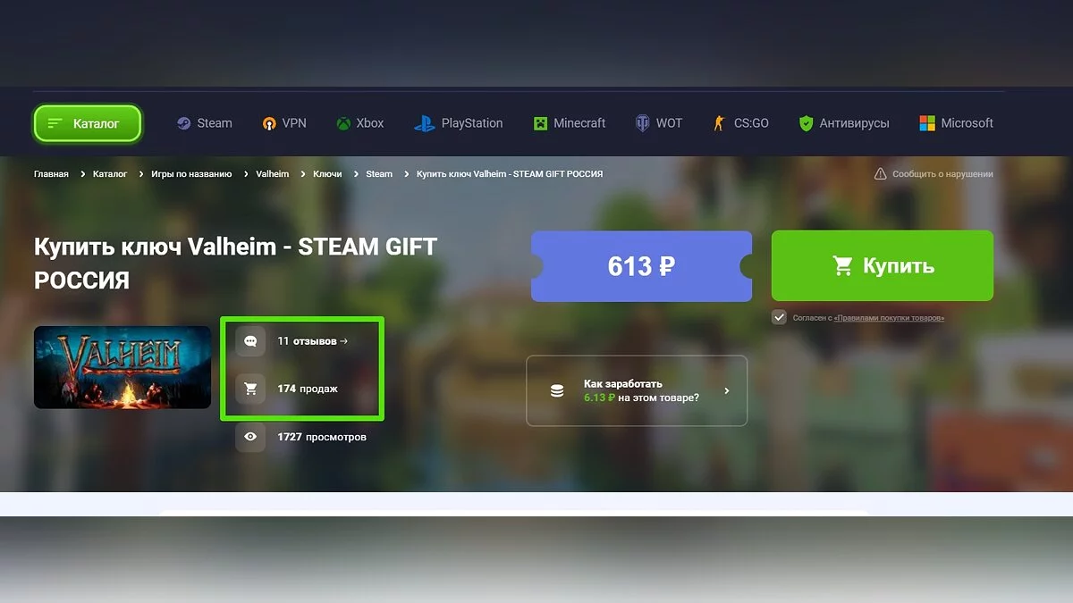 На данный момент один из основных способов продажи игр в отечественном регионе — это Steam GIFT. Кликнув на необходимое предложение из списка доступных товаров, вы перейдёте на страницу продавца на маркетплейсе GGsel.