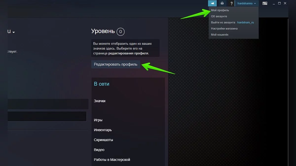 - Нажмите на никнейм в правом верхнем углу и выберите «Мой профиль».
