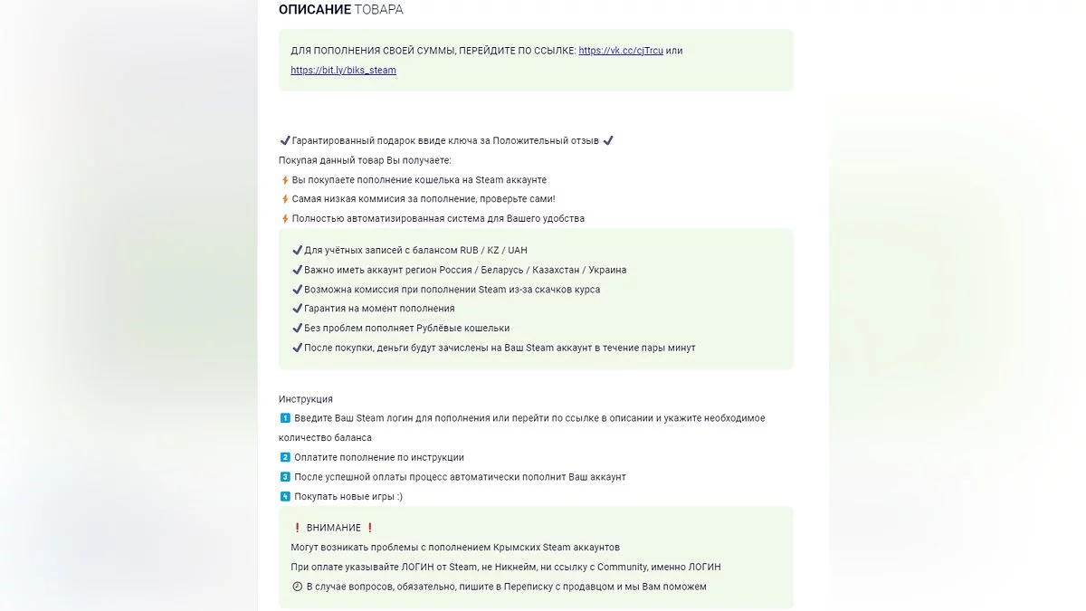 Перед покупкой всегда читайте описание товара. Здесь собрана вся детальная информация об активации и доступных регионах, а также инструкция по оплате и возможные проблемы, которые могут возникать на некоторых аккаунтах.