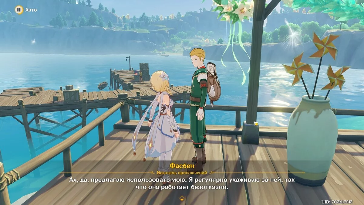 Последнее фото нужно сделать напротив беседки, в которой находится Фасбен. Для этого встаньте на холм с противоположной стороны пирса и выберите любого персонажа. Выполните следующие условия: