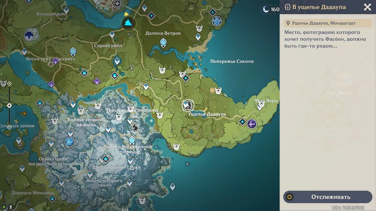 Отправляйтесь в ущелье Дадаупа, которое находится южнее города Мондштадт, справа от Драконьего хребта. Неподалёку есть точка для телепортации, поэтому добраться сюда будет несложно.
