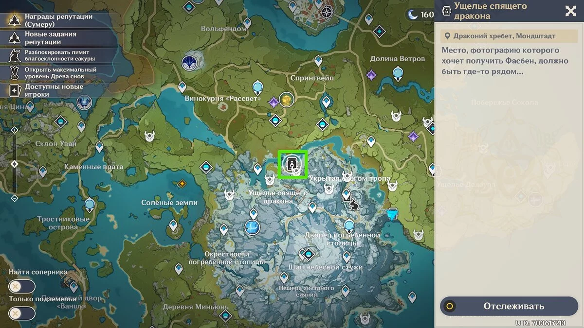 Используйте быстрое перемещение к ближайшему телепорту, чтобы добраться до последней точки. Она находится неподалёку от Ущелья спящего дракона.
