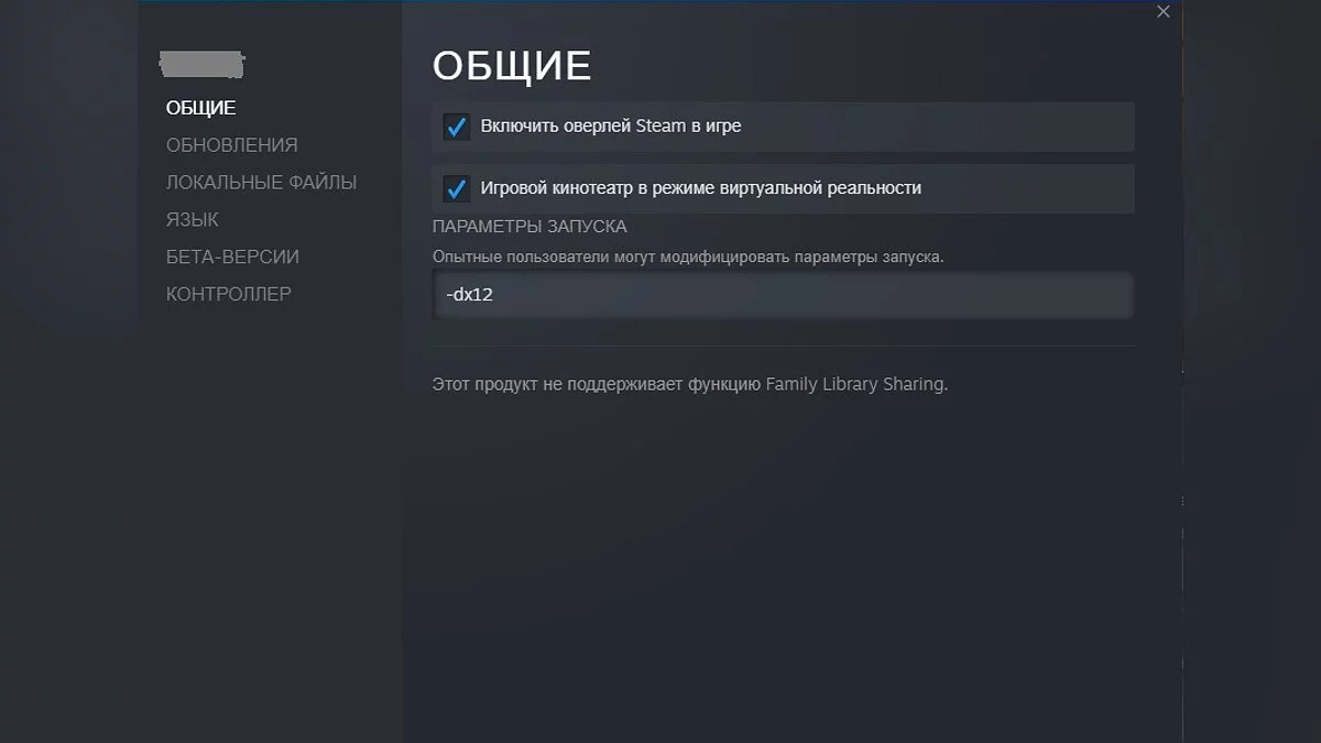 - В поле «Параметры запуска» добавьте «-dx12» без кавычек и закройте окно;