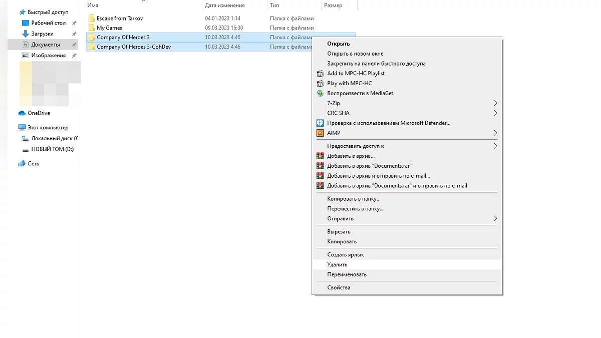 - Найдите папки «Company of Heroes 3», «Company of Heroes 3-CohDev» и удалите их;