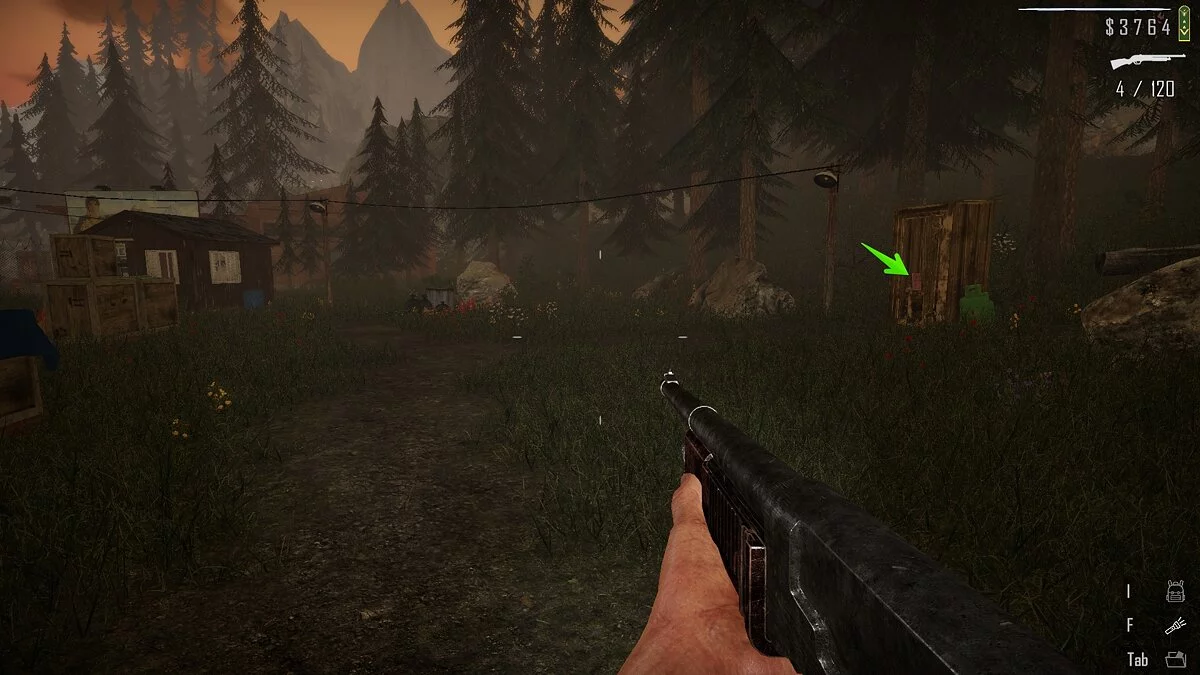 Вернитесь к оружейному магазину и сверните по проселочной дороге на лесопилку. Доберитесь сюда и осмотрите основное здание.