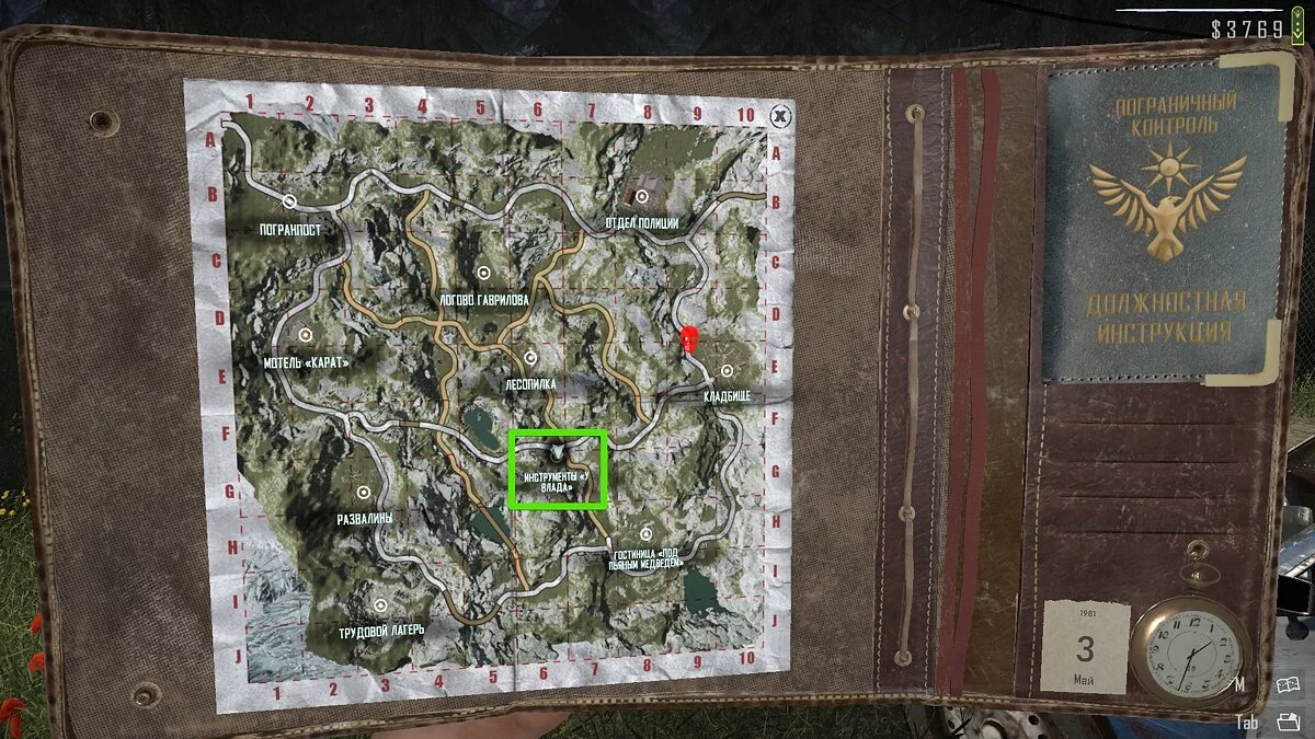 Сразу после выполнения предыдущего сюжетного квеста вас отправят в магазин «Инструменты “У Влада”». Он находится в центральной части карты — вы часто будете заезжать сюда за оружием, инструментами и боеприпасами.