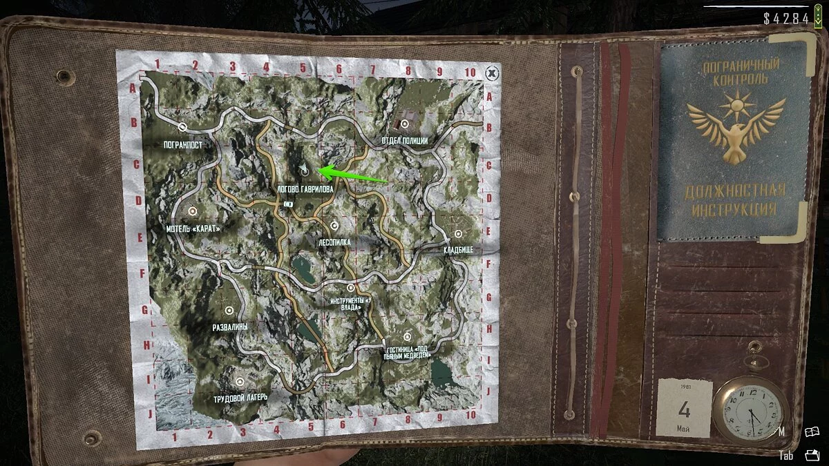Вы можете подобрать этот документ с самого старта игры. Для этого осмотрите уличный туалет на погранпосту, который находится справа от трейлера, в котором отдыхает главный герой.