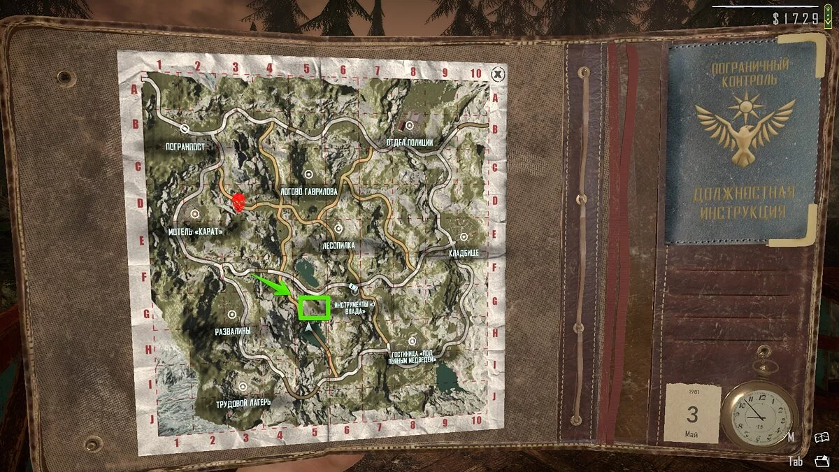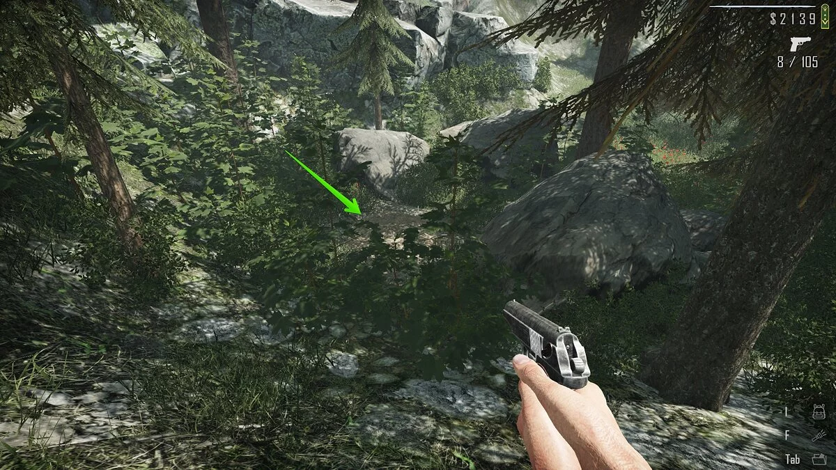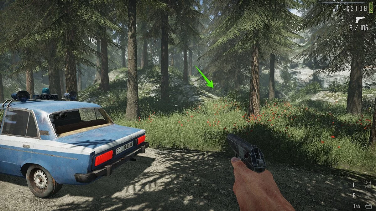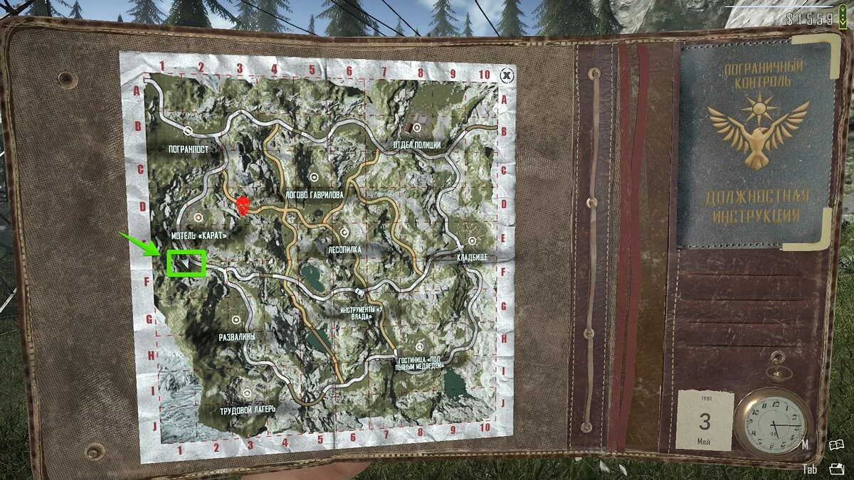 Теперь следует посетить местность рядом с логовом Гаврилова (метка на карте появится после прохождения сюжетного квеста). Если вы находитесь на перекрестке двух проселочных дорог, то следуйте вдоль скалы к пруду. Не доходя до него в лесу вы должны найти тайник. Если же вы идёте от дома Гаврилова, то держитесь правой стороны.