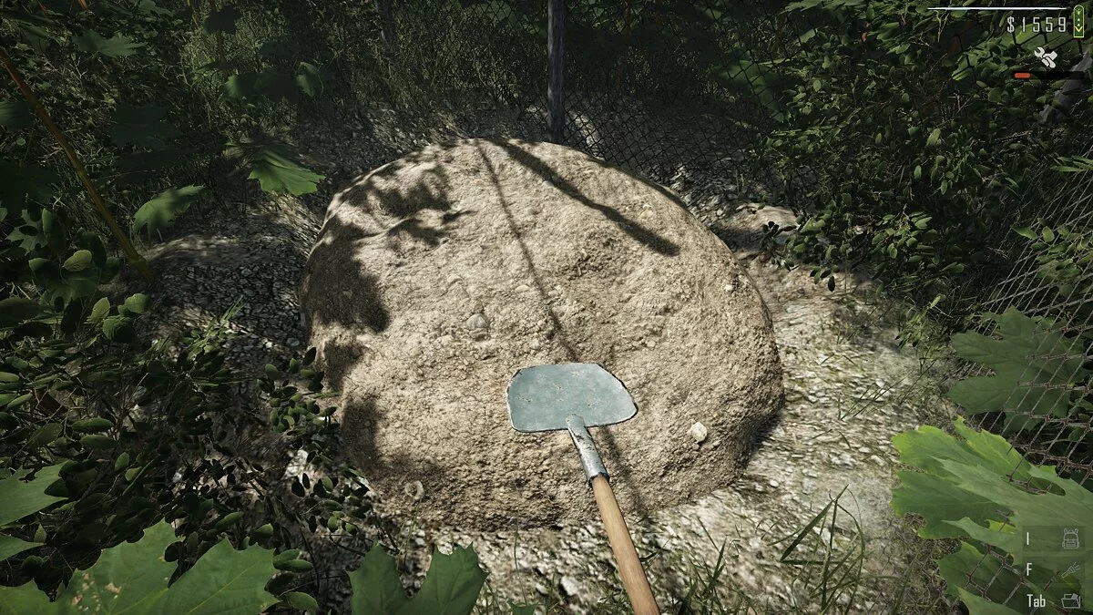 От предыдущего места двигайтесь наверх по просёлочной дороге и доберитесь до моста. Преодолейте мост, после чего заглушите двигатель и выйдите из автомобиля. Поверните направо и поднимитесь на холм. Здесь вы увидите насыпь, которую нужно раскопать.