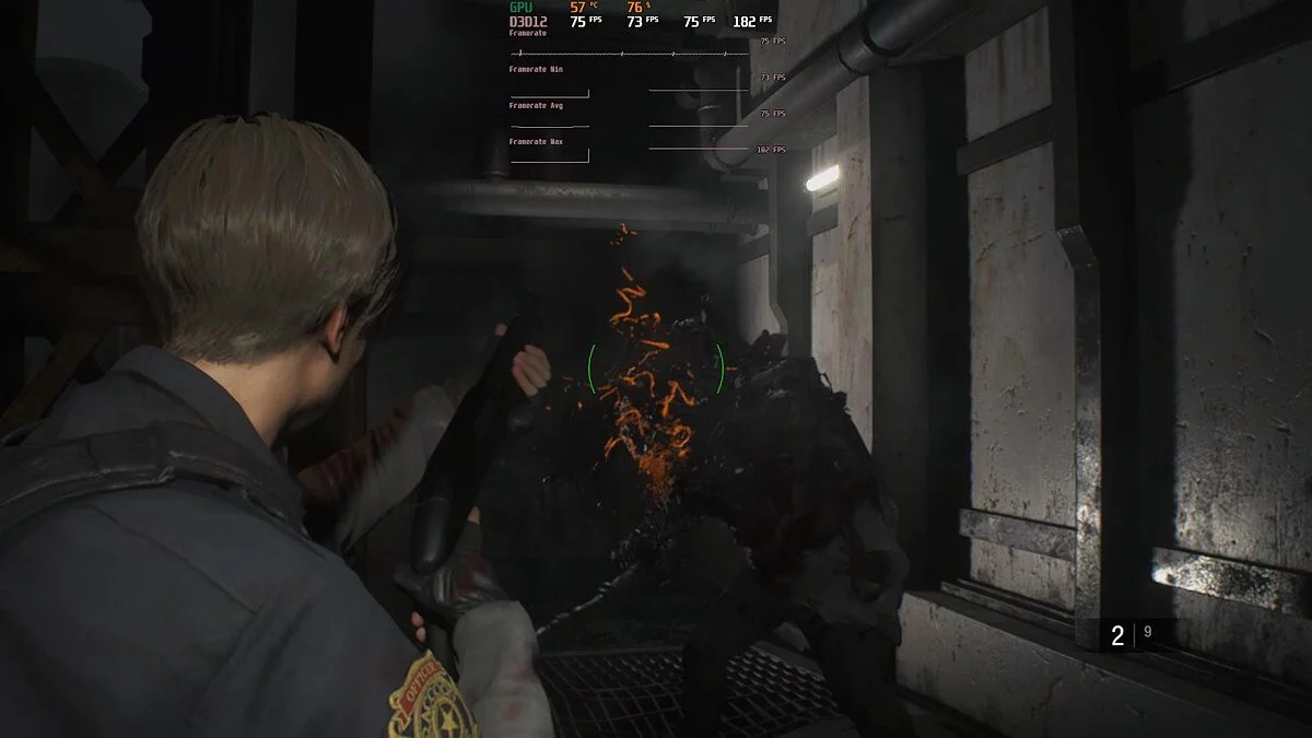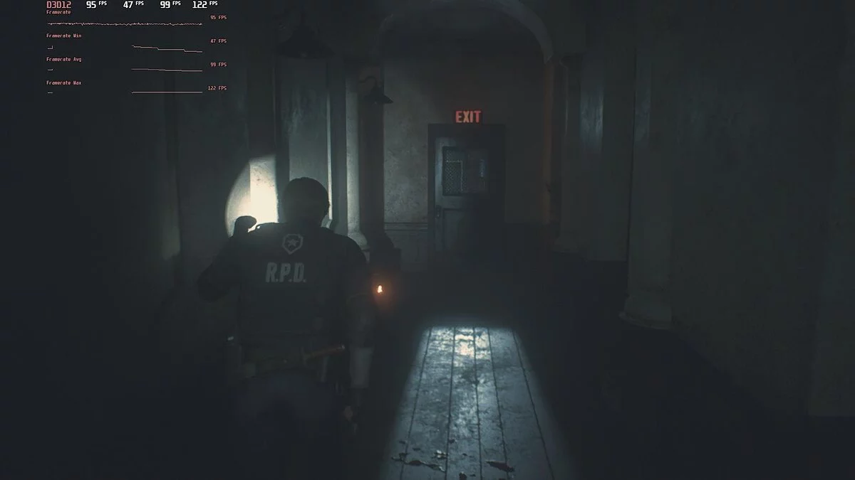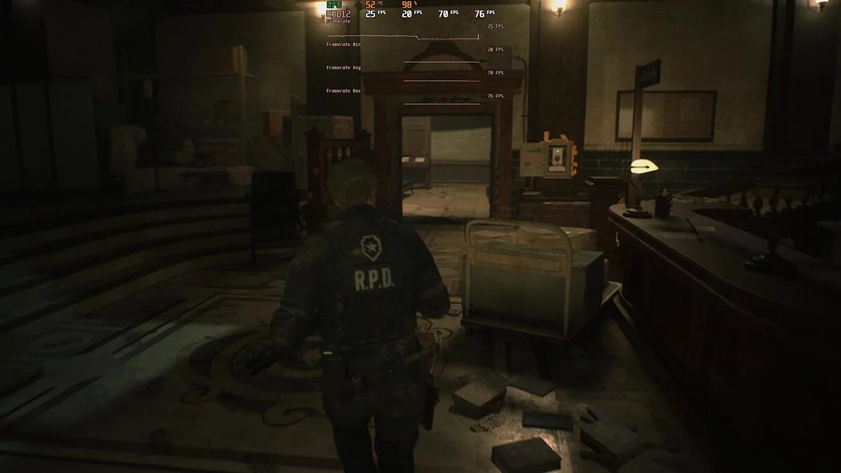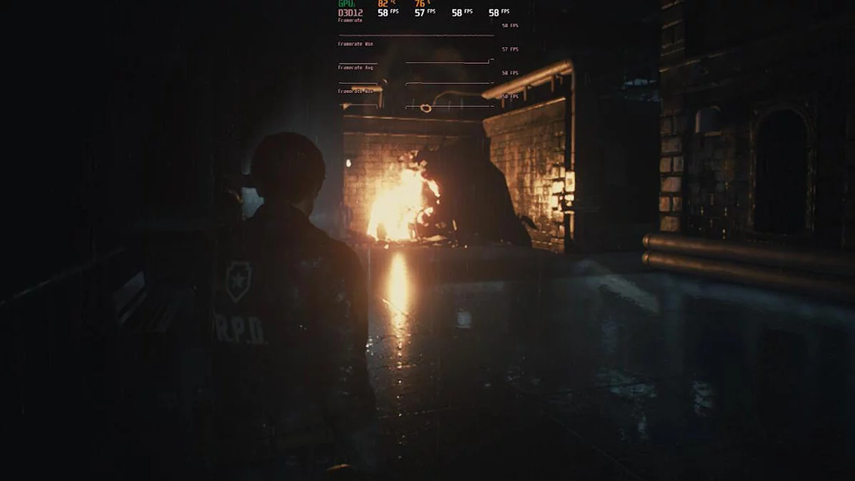 Выключив оверлей, удалось поднять среднее значение до 58 FPS, что всё ещё недостаточно для динамичного шутера, но для Resident Evil 2 вполне неплохой результат. Правда, картинка иногда становилась слишком мыльной, но зато удалось сохранить производительность.