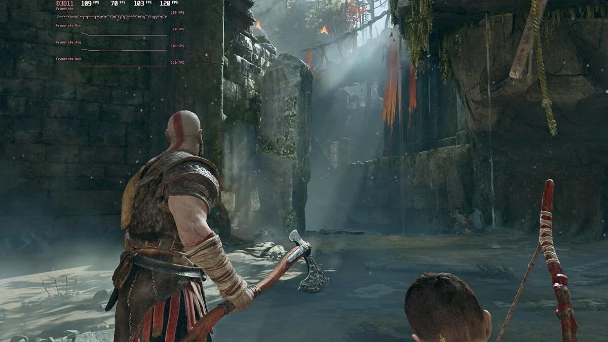 Выключив оверлей, особых изменений мы не заметили. Была просадка до 20 FPS, но, скорее всего, это просто мимо пробежал абориген. В среднем было 68 FPS, что комфортно, учитывая, какую красоту можно было наблюдать на максимальных настройках.