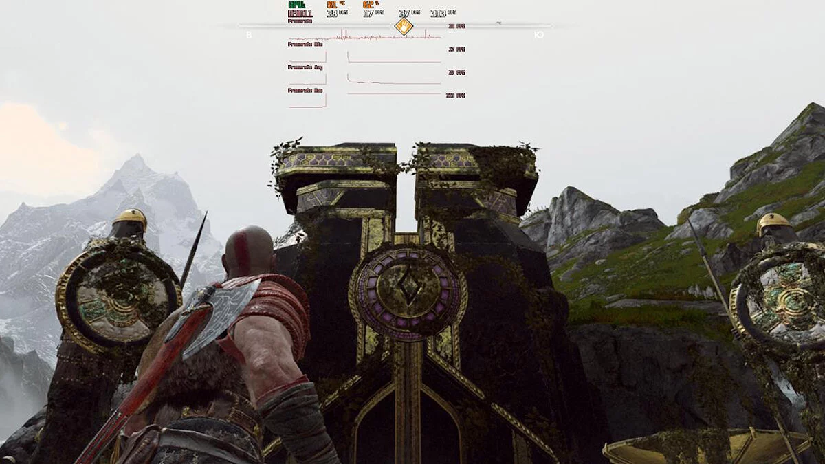 Чтобы получить среднее значение, пришлось ждать минут 15. Каждое движение вызывало мелкие фризы, нагружая систему. Включённый оверлей заметно отбирал и без того маленькие мощности, в связи с чем в среднем мы получили 37 FPS.