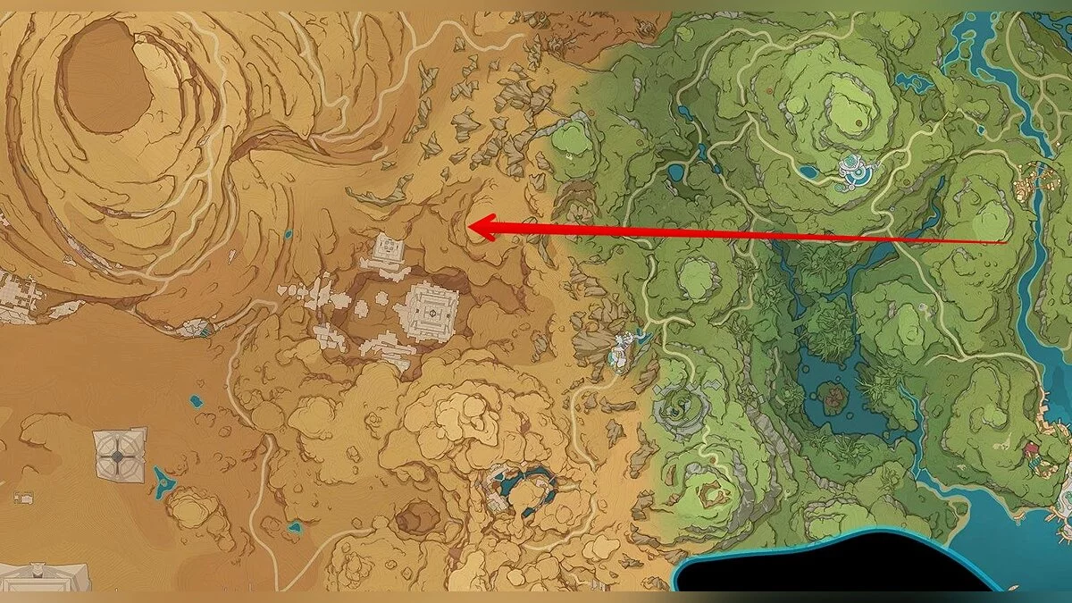Двигайтесь к обозначенной точке. Быстрее всего к ней добраться от подземелья Город золота. Телепортируйтесь к нему и бегите на север.