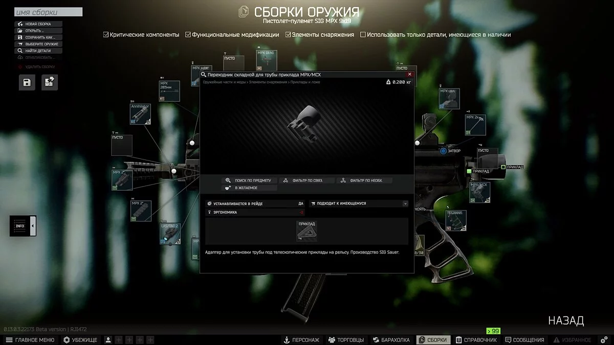 Для получения задания необходим 23 уровень ЧВК. Предстоит выполнить сборку SIG MPX с требуемой спецификацией. Оружие можно обменять на 7 жетонов ЧВК BEAR на 1 уровне лояльности Миротворца, а также купить у него же за 381 доллар на 2 уровне лояльности. Также вы вправе вынести пушку из рейда или купить на барахолке. Для сдачи квеста понадобятся: