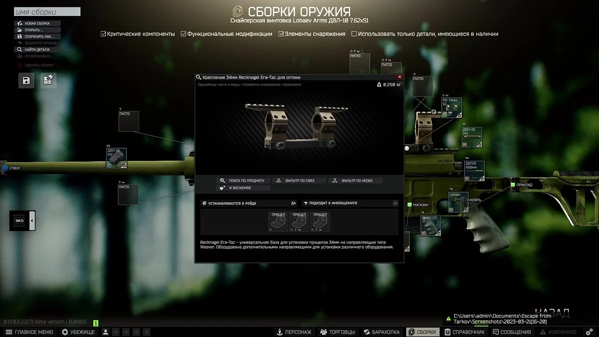 - Крепление 34мм Recknagel Era-Tac для оптики — Можно приобрести только на барахолке;