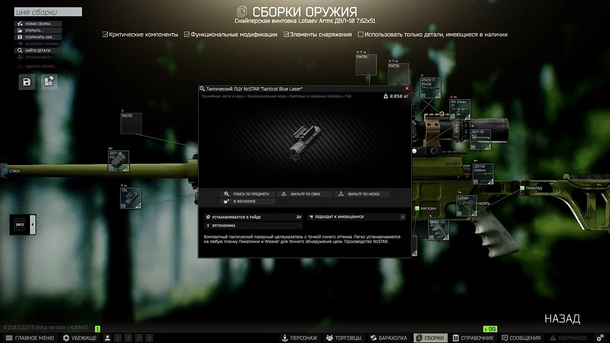 Для открытия требуется 17 уровень ЧВК. Вам надо собрать снайперскую винтовку ДВЛ-10. Есть выгодный бартер на 3 уровне Лыжника на 5 статуэток коня и 1 чайник. Также на 4 уровне лояльности Лыжника оружие можно обменять на 4 Набора металлических частей и 2 Термита. Далее приступайте к сборке: