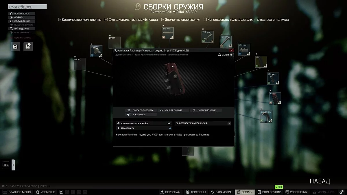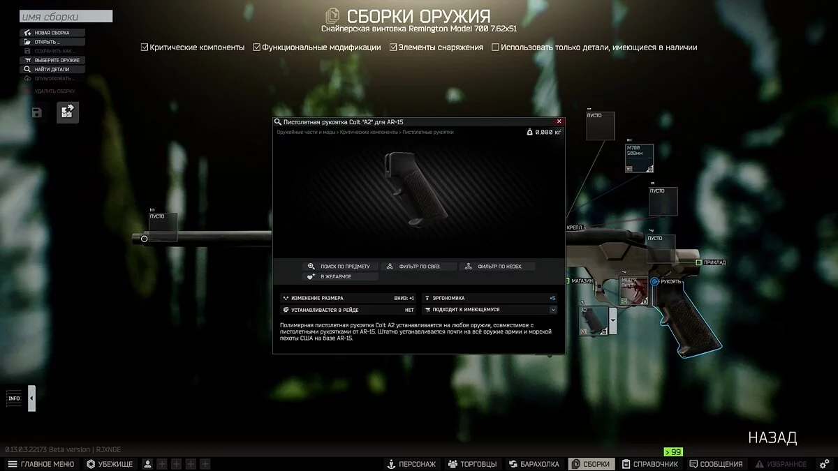 Для выполнения данной задачи необходимо собрать сразу два оружия — снайперскую винтовку М700 и пистолет М1911. Винтовку можно обменять у Егеря на 2 уровне лояльности на Масло для бороды. Пистолет же покупается на 1 уровне Миротворца за 108 долларов. Собираем следующие детали: