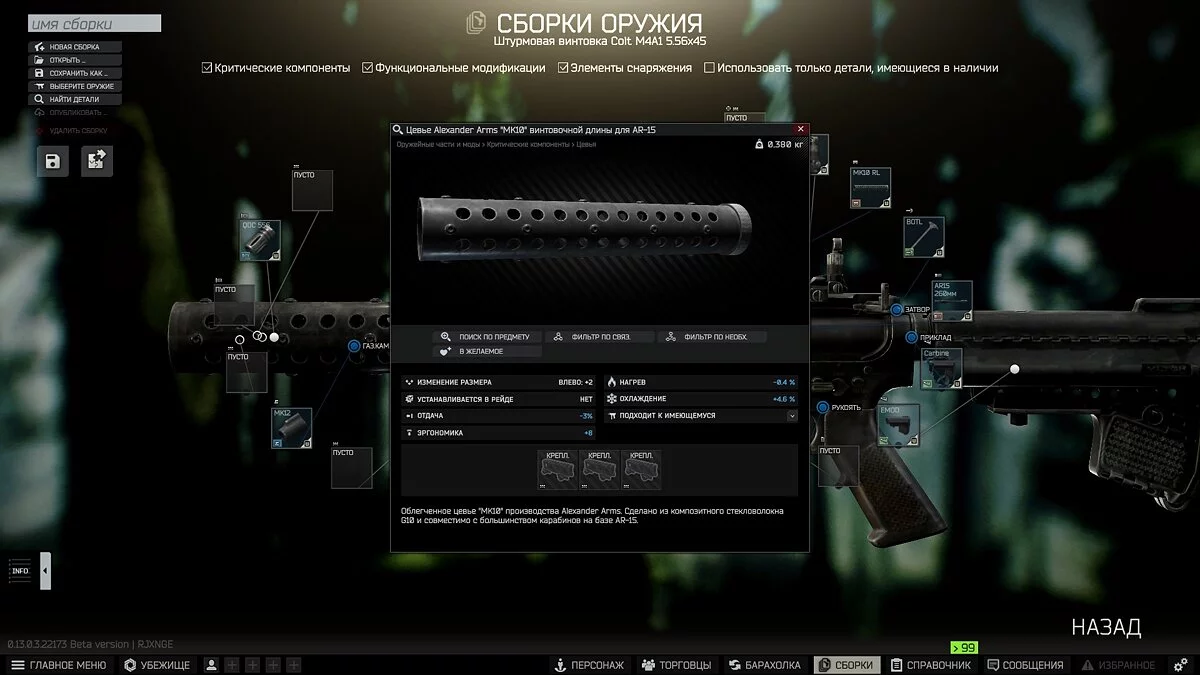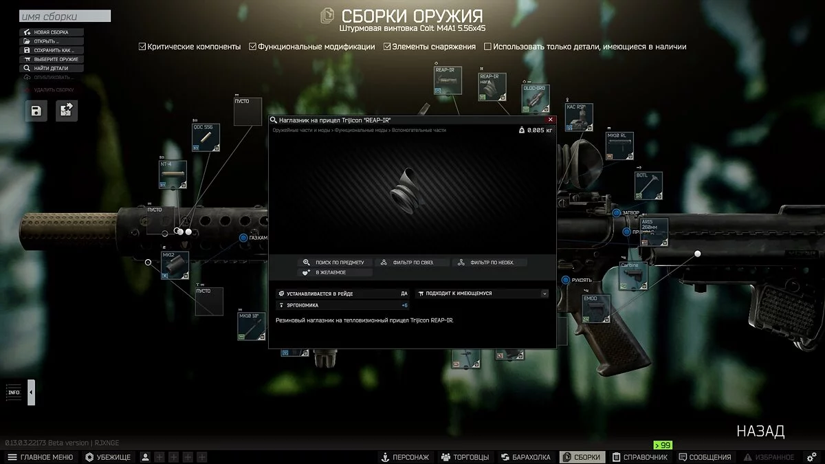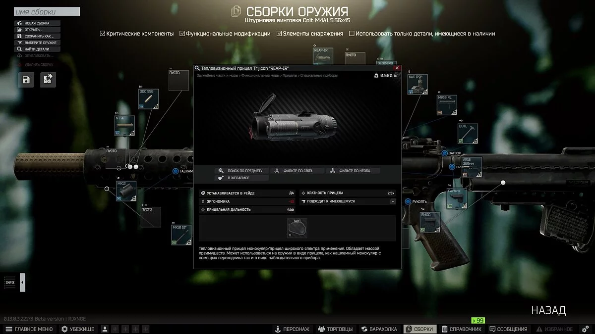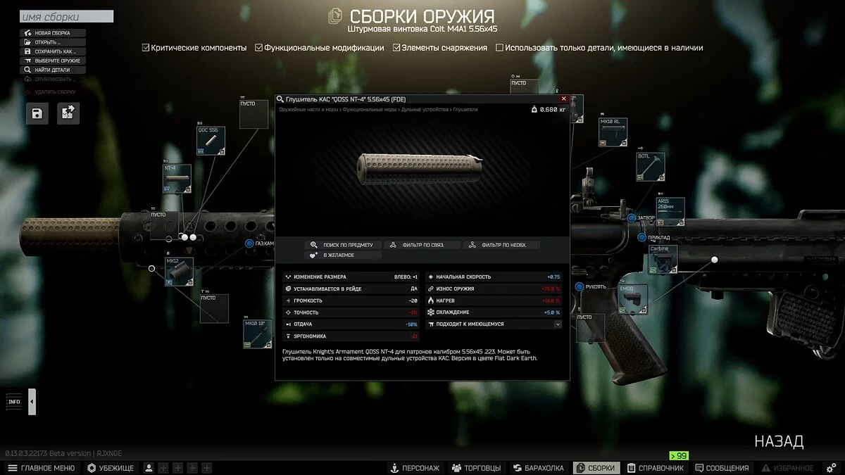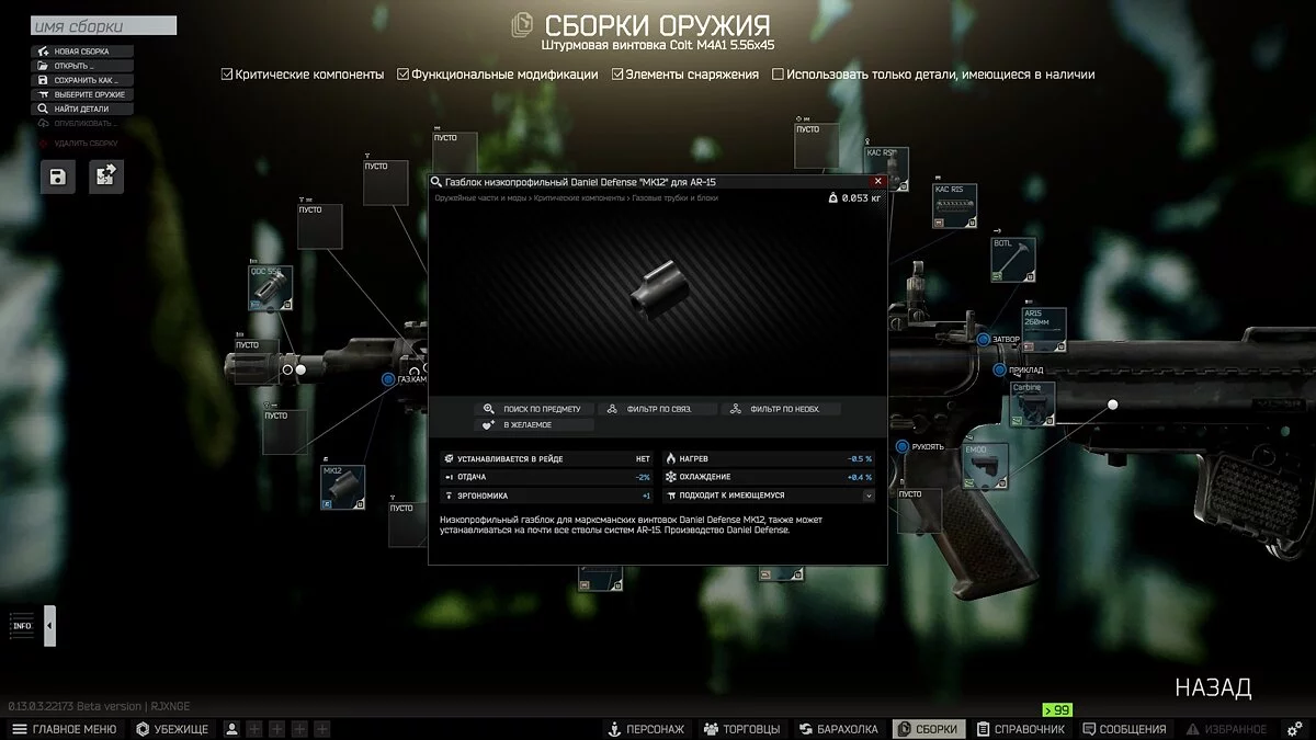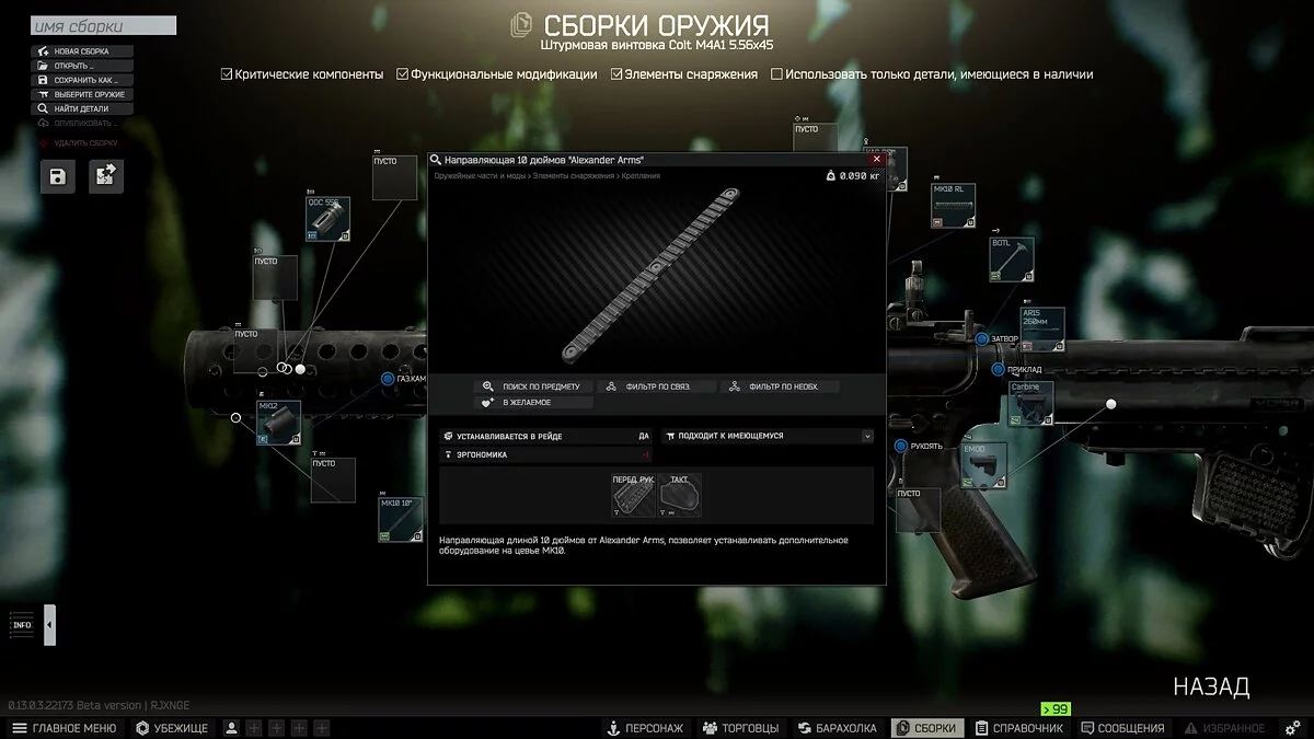 Вам предстоит модифицировать M4A1 при помощи дорогих модулей. Оружие можно купить или обменять у Миротворца, найти в рейде или купить на барахолке. Советуем приобрести все детали заранее, так как некоторые предметы очень сложно получить. Для сборки понадобятся:
