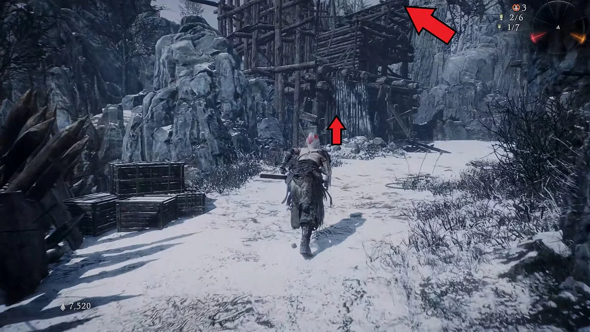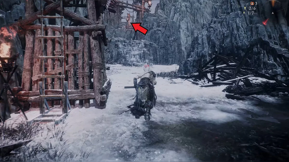 Миссия: «Созерцание Глефы праведности». От второго боевого флага идите влево к палатке. Слева от неё есть деревянная башня с опасным уступом. Поднимаемся на него и сворачиваем влево. Мы увидим реку с деревянным мостом и пещерой. Идём вправо от пещеры и переходим на соседний мост. Здесь спрыгиваем вниз. Теперь ступайте в сторону каменного форта. Поднимитесь по стене и до крайнего выступа. Здесь лежит предмет.