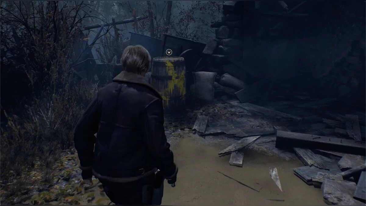 Оказавшись на улице, следуйте вперед. Вы увидите свою первую разрушаемую бочку — помечена желтой краской. Ее можно сломать ножом или ударом ноги. Войдите в хижину, чтобы найти пишущую машинку. Они используются для ручного сохранения.
