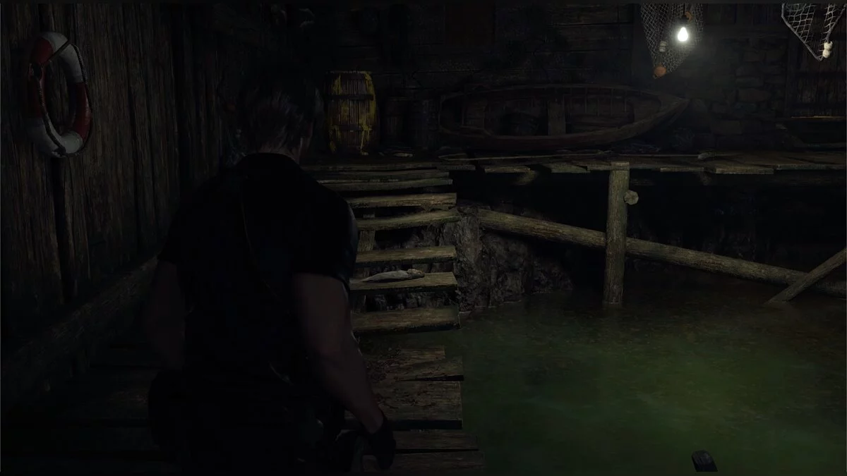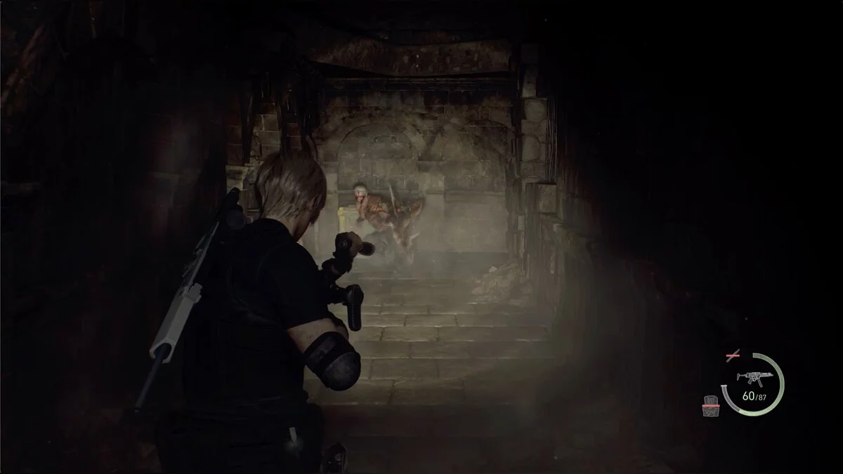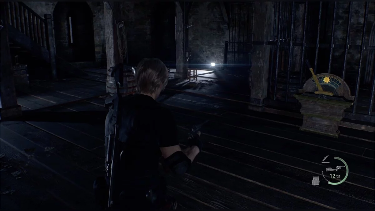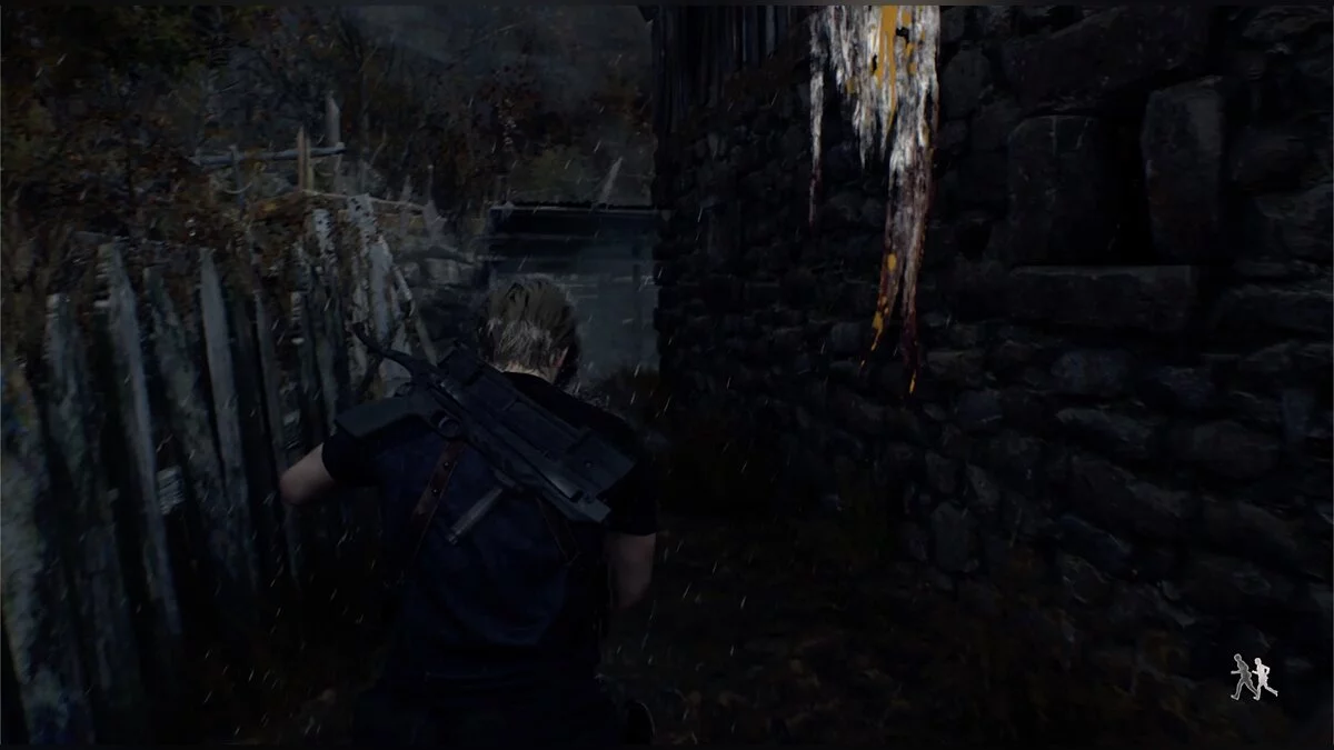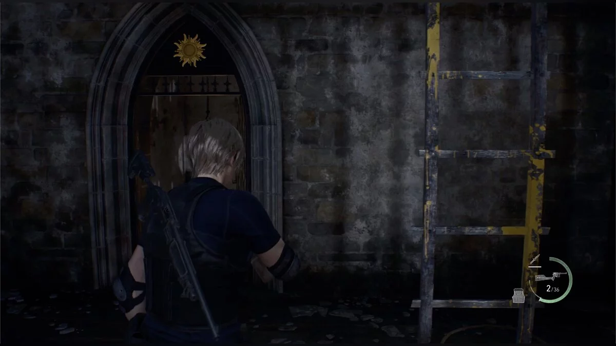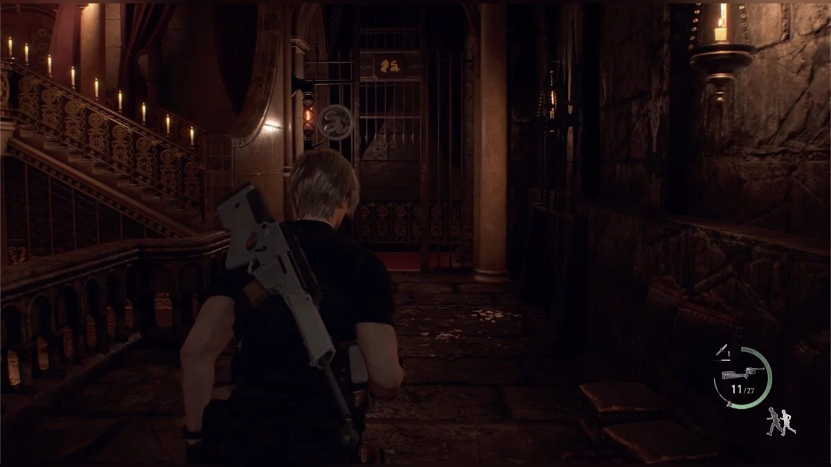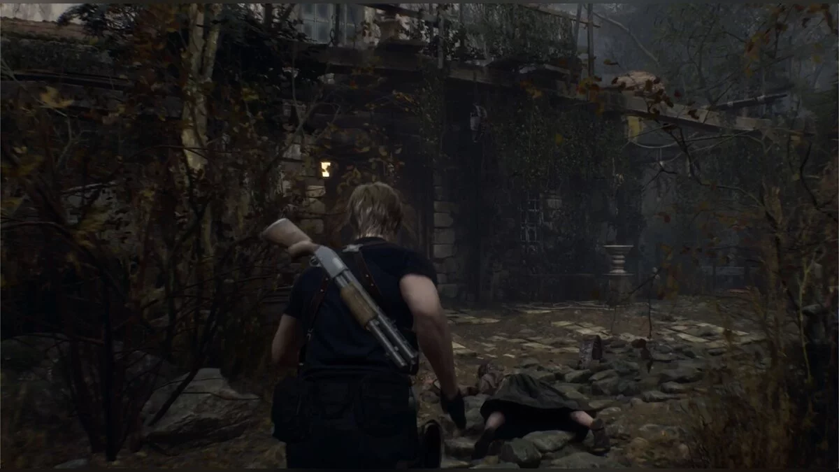 После кат-сцены вы окажетесь в новом месте и без снаряжения. У вас только один путь вперед. Заберите из трупа кухонный нож — он пригодится. Поднимайтесь по лестнице и откройте решетку, впереди враги, однако они вас не ждут. Время обучиться местному стелсу. Победив крестьянина, Леон заметит в другой комнате свои вещи.