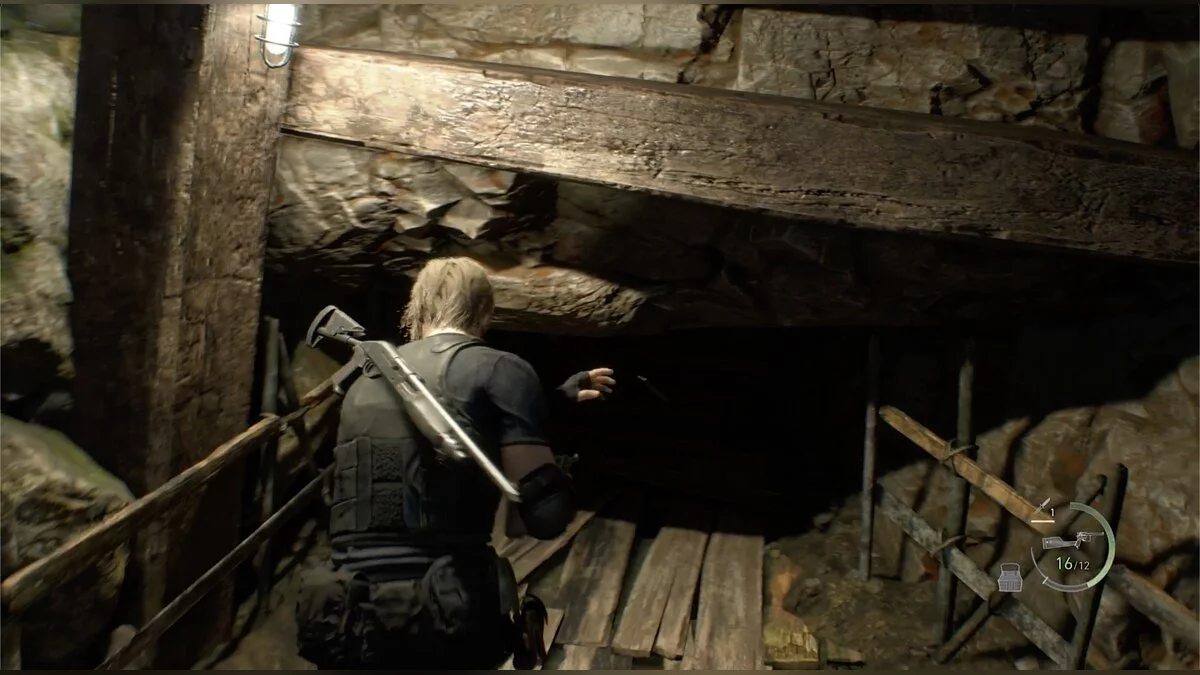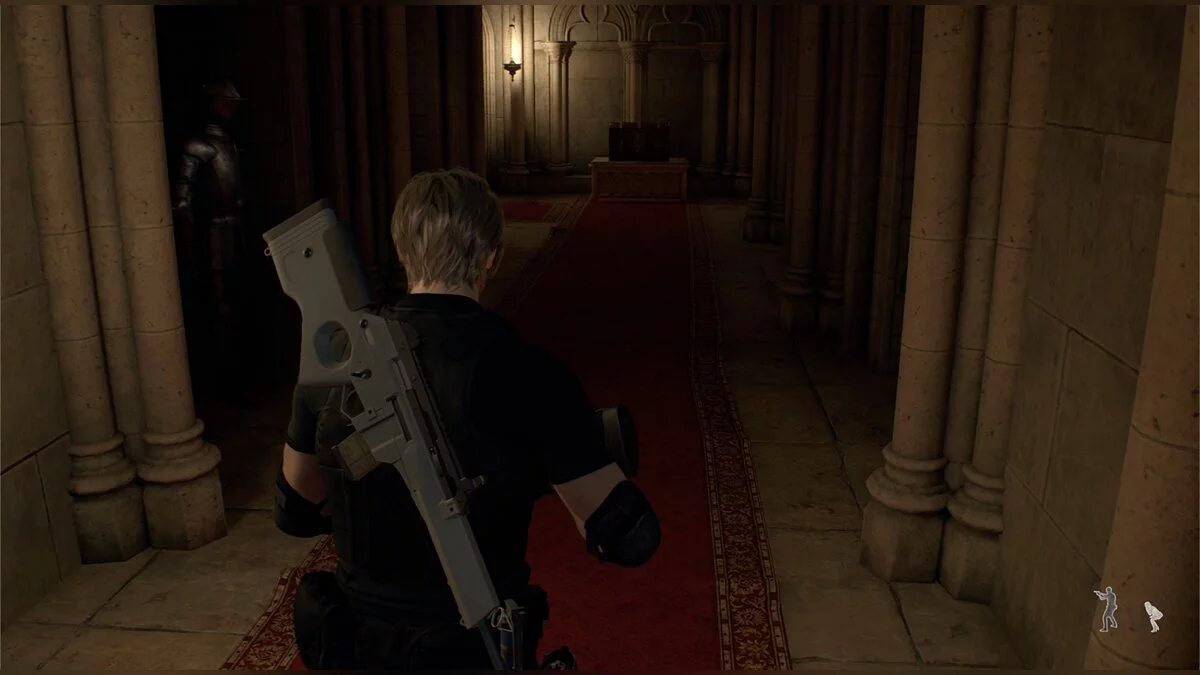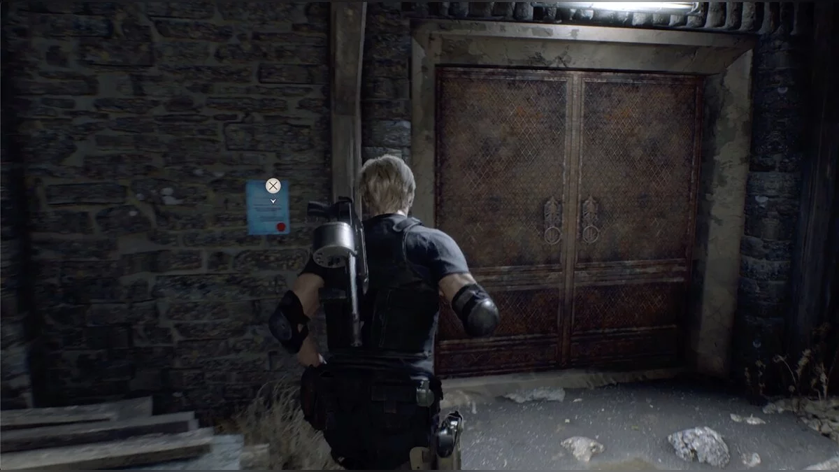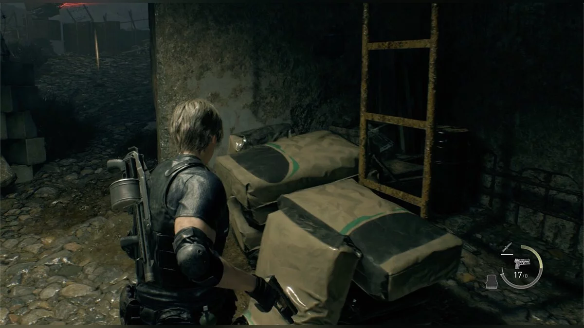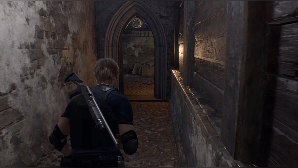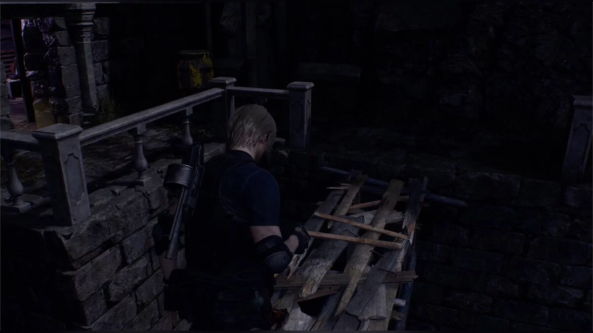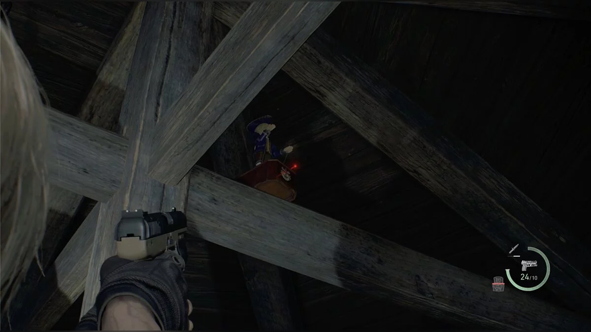 После кат-сцены вы окажетесь в новом месте и без снаряжения. У вас только один путь вперед. Заберите из трупа кухонный нож — он пригодится. Поднимайтесь по лестнице и откройте решетку, впереди враги, однако они вас не ждут. Время обучиться местному стелсу. Победив крестьянина, Леон заметит в другой комнате свои вещи.