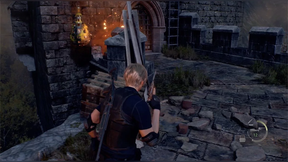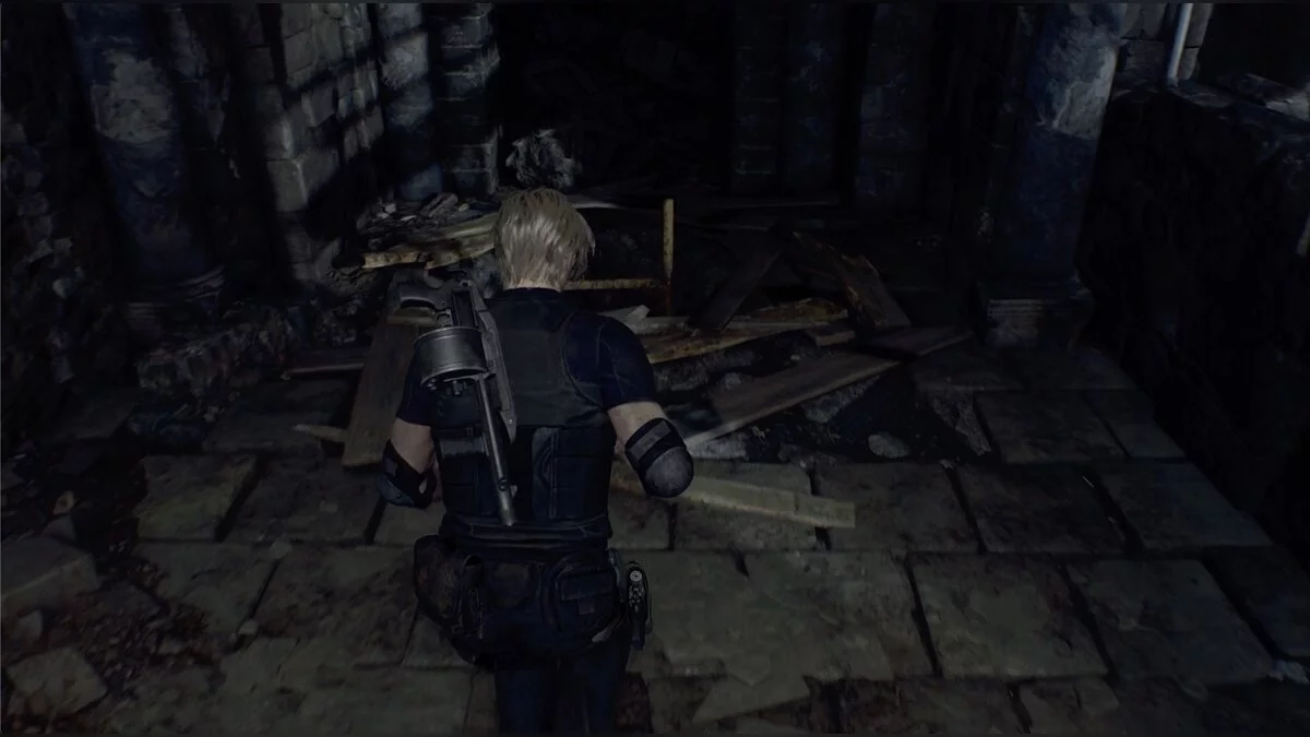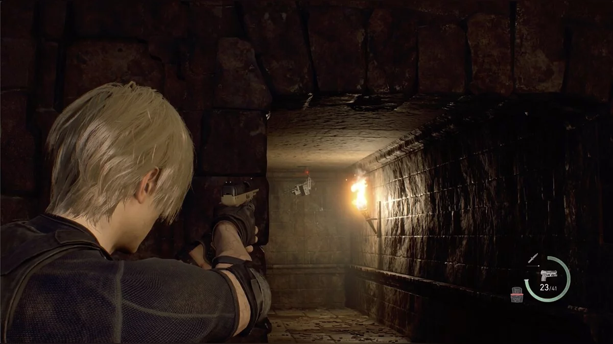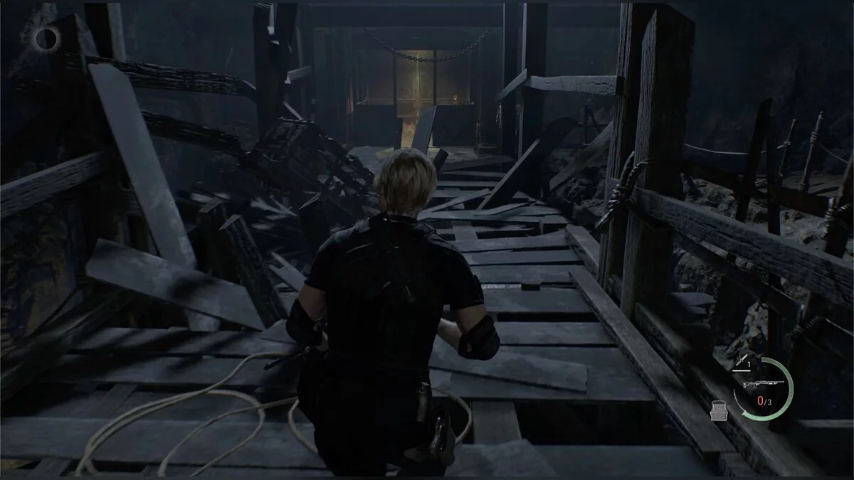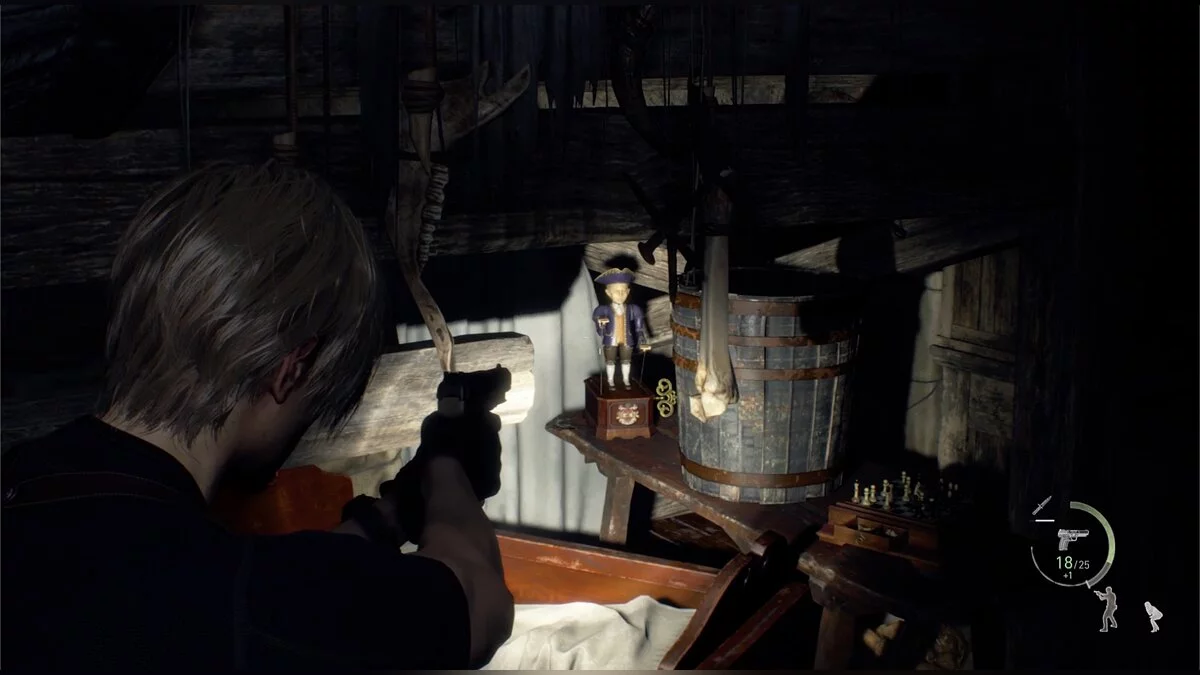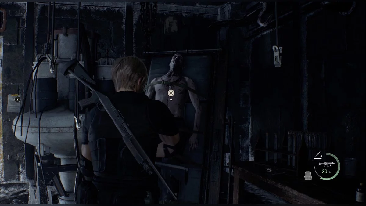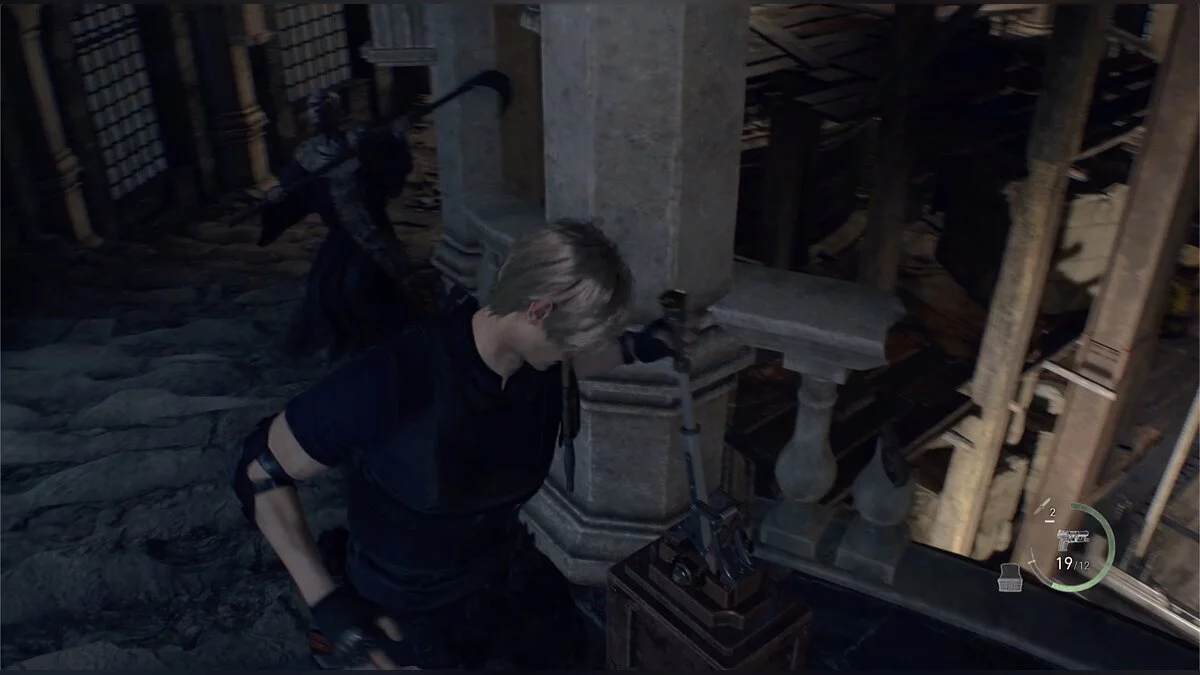 После кат-сцены вы окажетесь в новом месте и без снаряжения. У вас только один путь вперед. Заберите из трупа кухонный нож — он пригодится. Поднимайтесь по лестнице и откройте решетку, впереди враги, однако они вас не ждут. Время обучиться местному стелсу. Победив крестьянина, Леон заметит в другой комнате свои вещи.