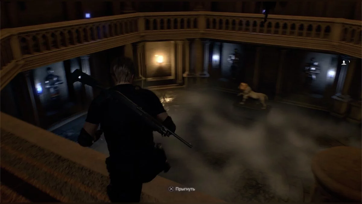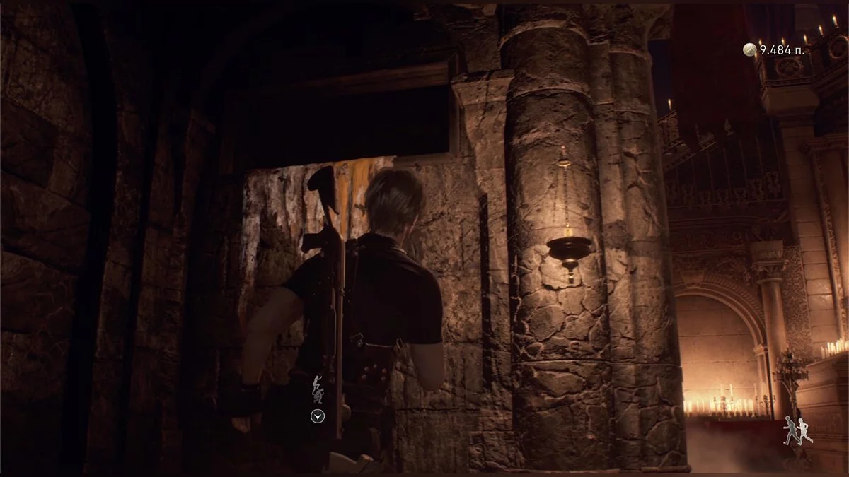 В следующей комнате несколько врагов. После победы пройдите по коридору и разбейте клетку с бархатистым самоцветом. Теперь поднимитесь по лестнице на второй этаж. В комнате вы найдете рычаг, который может удерживать Эшли. Как только она это сделает, откроется дверь — идите туда.