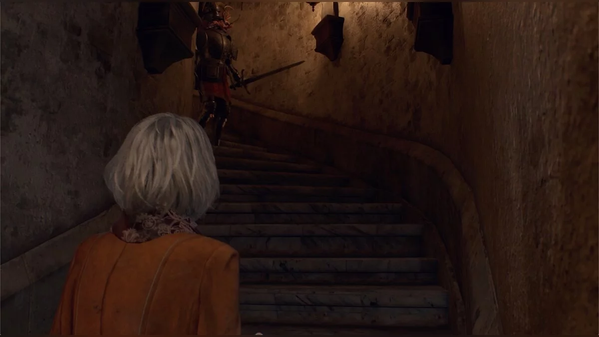 Разберитесь с врагами вокруг дома без крыши, затем обойдите его и залезайте внутрь через окно. Идите направо во вторую комнату и посмотрите на стропила, чтобы найти первого кастеляна. В каждой главе их нужно уничтожить, определить местоположение можно по характерным звукам — тиканье и лязг. Подробнее о куклах читайте в нашем гайде.